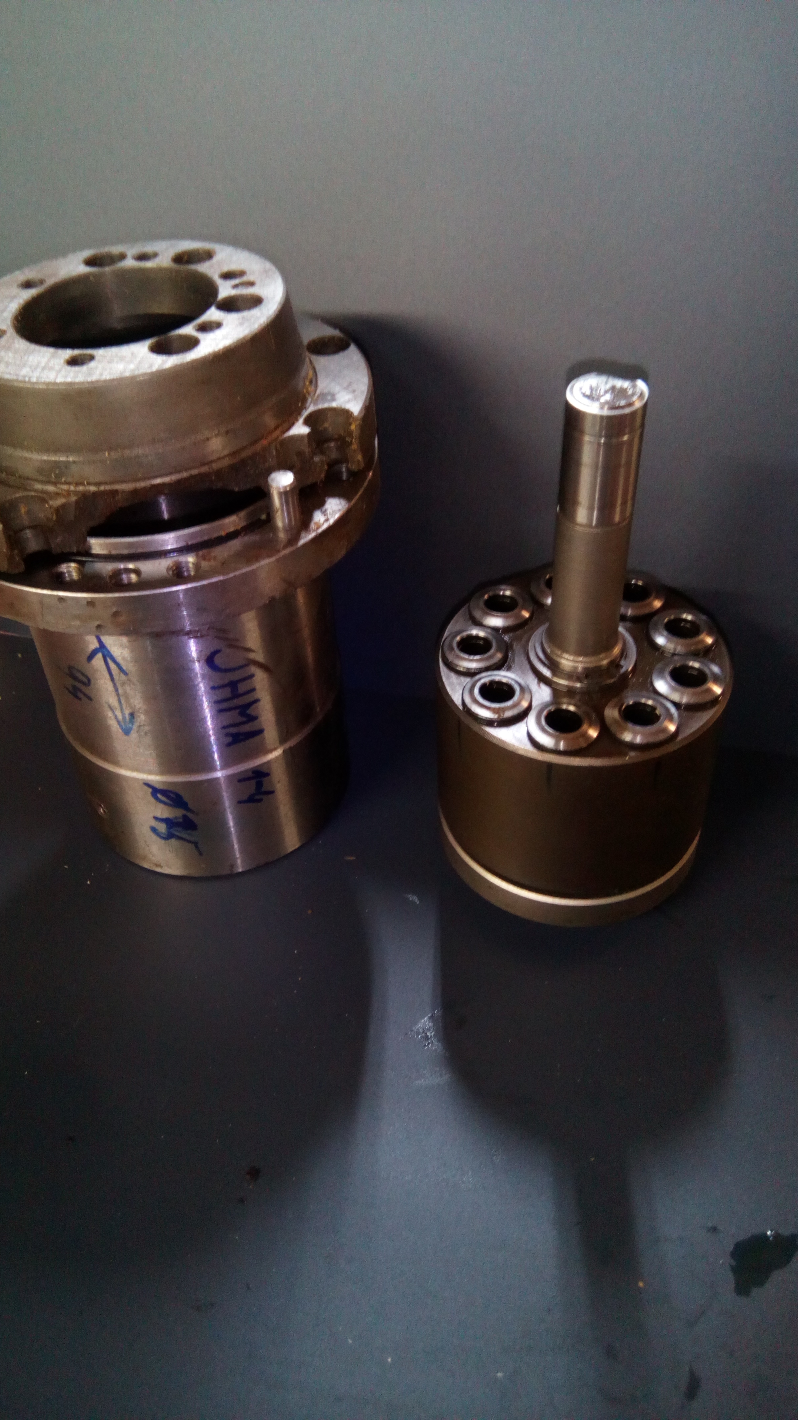 V podstatě kromě té dlouhé pístnice pod stolem, už jsem měl rozebrané úplně vše a souhlas - vše je plné hnědého rezavého bordelu a styčné plochy pístků v rozvaděčích jsou zčernalé a nehezké. Jojo hydromotor je ke koupení na slovensku, cena i s poštou 105EUR. Jinak repase firma Pelikán Vrchlabí - 4500Kč bez daně, nový motor z výprodeje jedné hydrofirmy 5800 bez daně a elektro-švestka nový ze starých zásob 5600 bez daně.