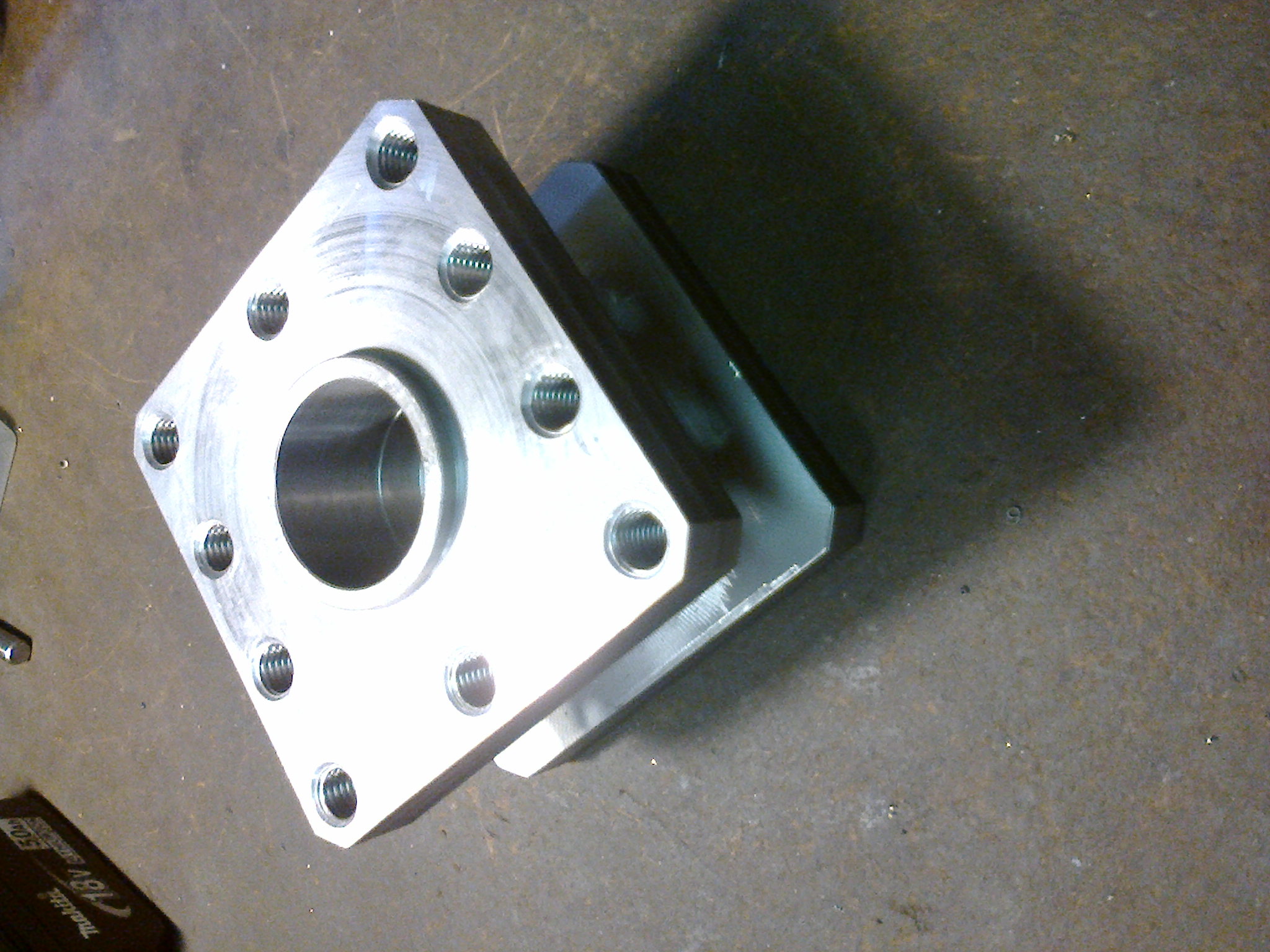 Takže při úklidu mi padl do oka orezlý špalek 11600, oměřil, průměr akorát, teda kdyby měl 165mm průměr, tak by rohy vyšly pěkně. Opískovat, aby nešel nůž hned do kopru, do 4-pakny na SV18 a už se točily rozmarýny po 3mm špony. Středící důlek, opřít hrot a sjet povrch, čelo, aby pak neházel vrták, 17mm od čela zápich a v délce 40mm k čelistem rozjet pravým a levým ubírákem až na pr 94. Otočit obrobek, důlek a sjet na čistou výšku, udělat to vrchní osazení, vrtákem předvrtat skrz a vnitřním ubíracím nožem vyjezdit díru pro ložisko pr 40H8, pak odlehčení. Otočit obrobek, vyjezdit nožem díru 29,95 dle čepu na mojem soustruhu doma - ten jsem si na mikrometr vytočil na druhém stroji už ráno. A na soustruhu máme hotovo. Pak jsem obkreslil fixou na obrobku hlavu z su32 a přebývající měsíčky uřazal pro urychlení flexou. Obrobek hodit na italskou vyběhanou frézku Saimp a 10mm stopkovou frézou vyjezdit ten pr 94 na 4hran rozměru 67x67mm za postupného otáčení obrobku po 90st. S tím pomohl trochu syn, je tu na brigošce a zrovna nevejral z okna, tak se zacvičil. Pro sichr rozměřit a jehlou orýsovat zespoda aretační drážky, upínkama stáhnout na stůl frézky a stopkovou frézou pr 7mm vyjezdit drážky 2,5mm do hloubky. Pak orýsovat díry pro šrouby, volil jsem je jinak, než jen 3 po jedné starně, přidal jsem o šroub, páč někdy jsou k mání kratší radeca. Na VS 16 vyvrtat a ozávitovat M12. Dnes jsem si vytočil šrouby z 11800, dávat 2tis za 10ks šroubů se mi nechce. Zítra jim zfrézuju hlavy na 4hr a je hotovo. Každý týden mrkám na inzerci, ale hlavu na su32 jsem pár let neviděl a upravovat z sv18, co tu mám 4 do foroty mi přijde jako prasárna. Tak tolik, snad je to pochopitelný postup. Jinak jsem dělal 20 let konstruktéřinu, ale měl jsem jít na technologii, to mě baví posledních pár let nějak víc, vymýšlet jak to vyrobit :)