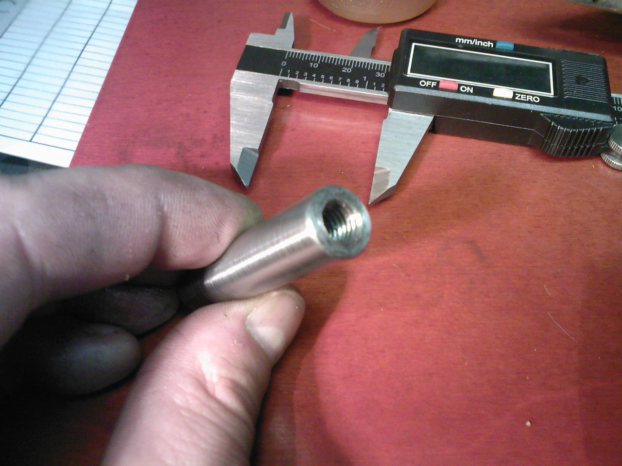 Tak se s tím mořím a snad bude výsledek OK. Tu hřídelku jsem napříč provrtal, udělal závit M6 pro červíka na zajištění a doštelování vůle k záv.tyče. Z druhé str. závit M8 cca 13mm na spojení se záv.tyčí.