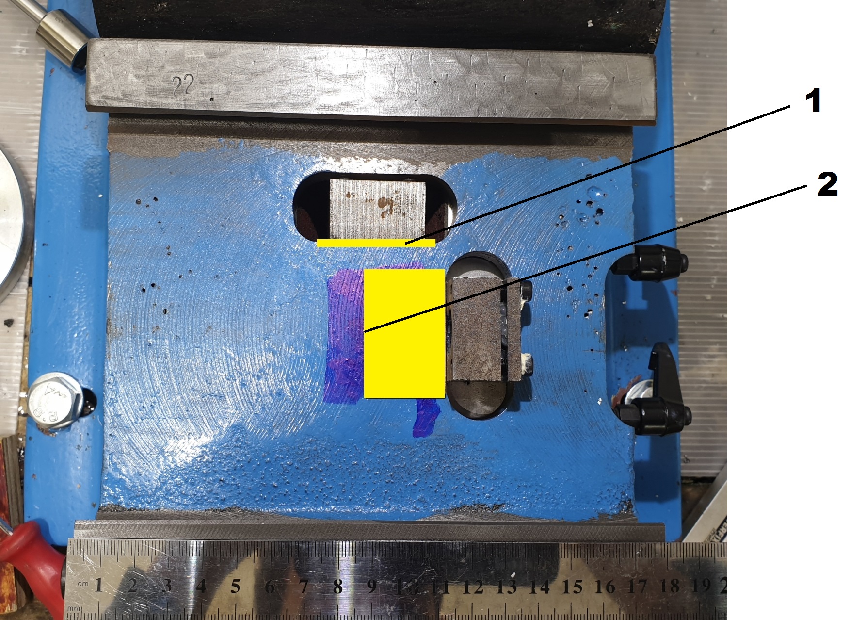 2, zvacsenie otvoru, odobrany material 40x27mm, pozadovana kolmost na rybinove vedenie