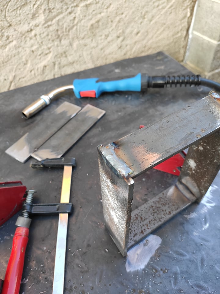 Ano vím. Provařené to je, ale dostatečně :) A i kdyby ne, tak je to jedno :D Držet se to bude za tu trubku a přichycené k dřevu to bude, jak je trubka dvěma šrouby na každé straně :) Takže ty dva plocháče mezi jsou jen výztuha a aby to bylo opřené a nevyklalo se :)