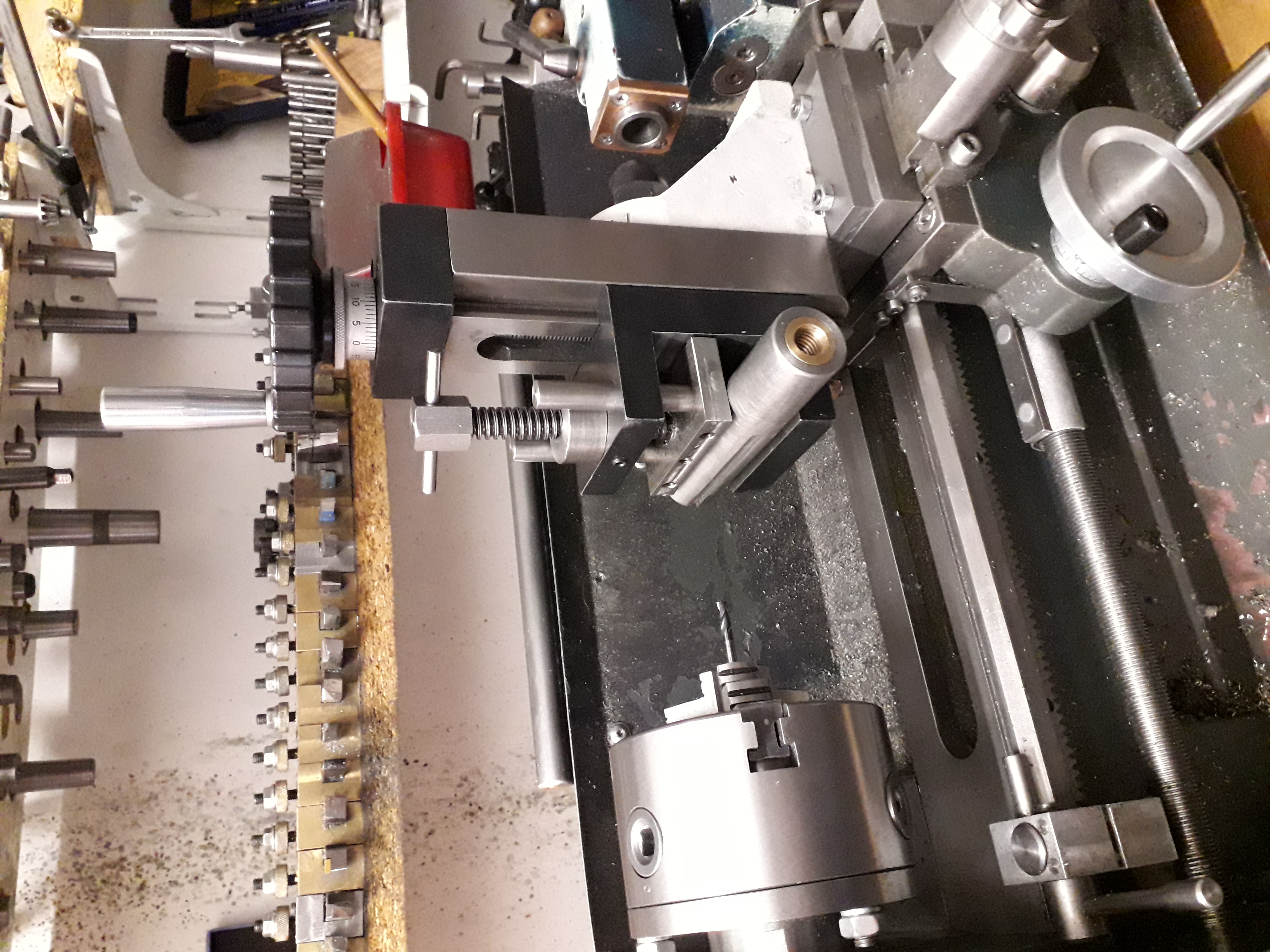 Urcite je ta tuhost horsi nez kdyz by byla jen svisla upinaci plocha. Vypada to na stary vyrobek, tipuju mezivalecny. Posuvovy sroub ma na konci zajisteni s whithworthem. Celkove provedeni je pevne a tuhe. Jiste by k tpmu byl vhodny tuzsi soustruh. Koupil jsem to na bazaru s tim, ze to risknu. Vcera jsem to poprve nahodil a vyzkousel na drobnostech a slo to vyborne. Pouzival jsem stopkove frezy upnute do sklicidla na 1200 rpm a uber do 0.5 mm. Planuju to jen na male veci. Freza je samozrejme freza, toto je jen hracka z ktere mozna ani nevyrostu