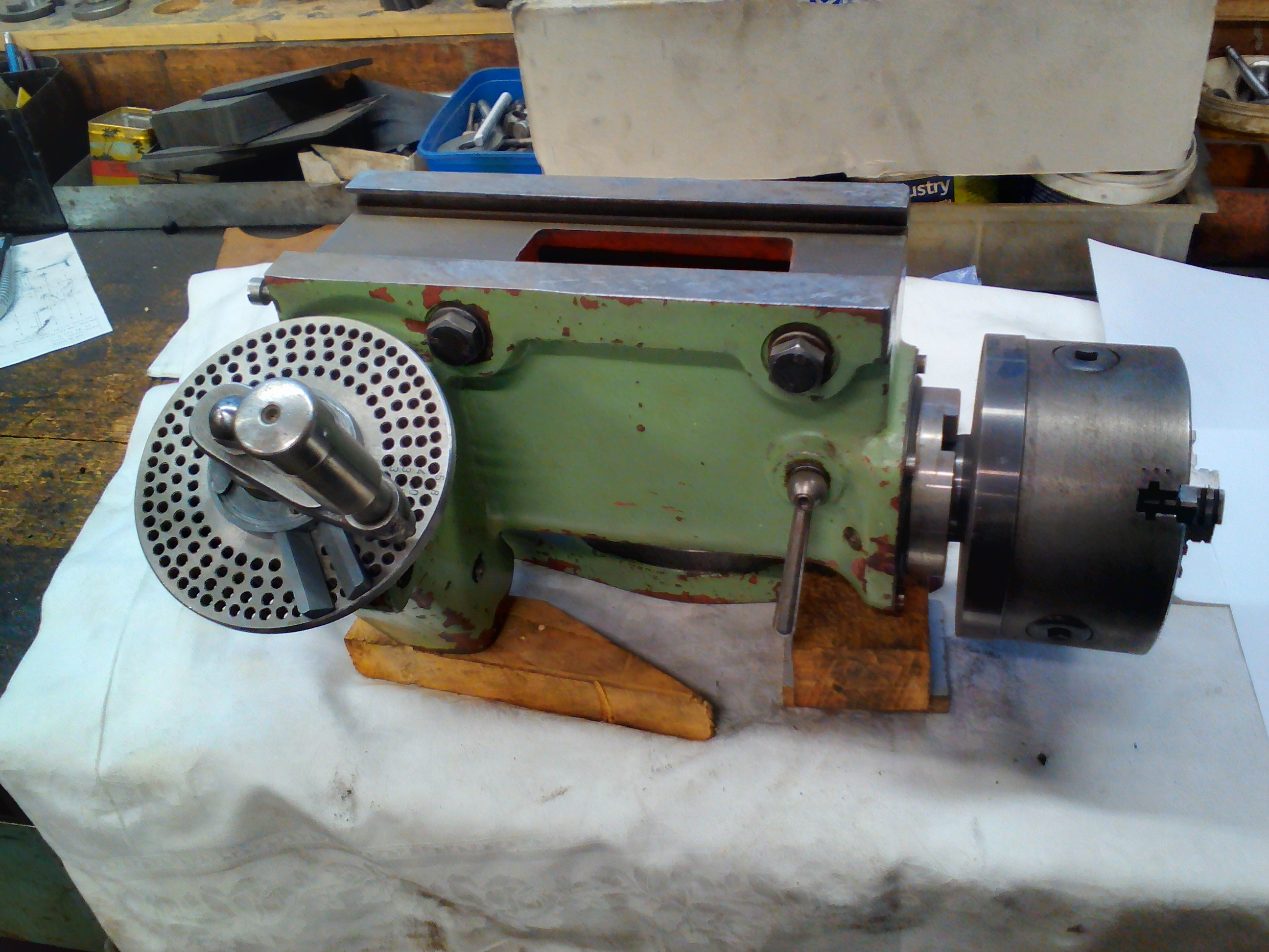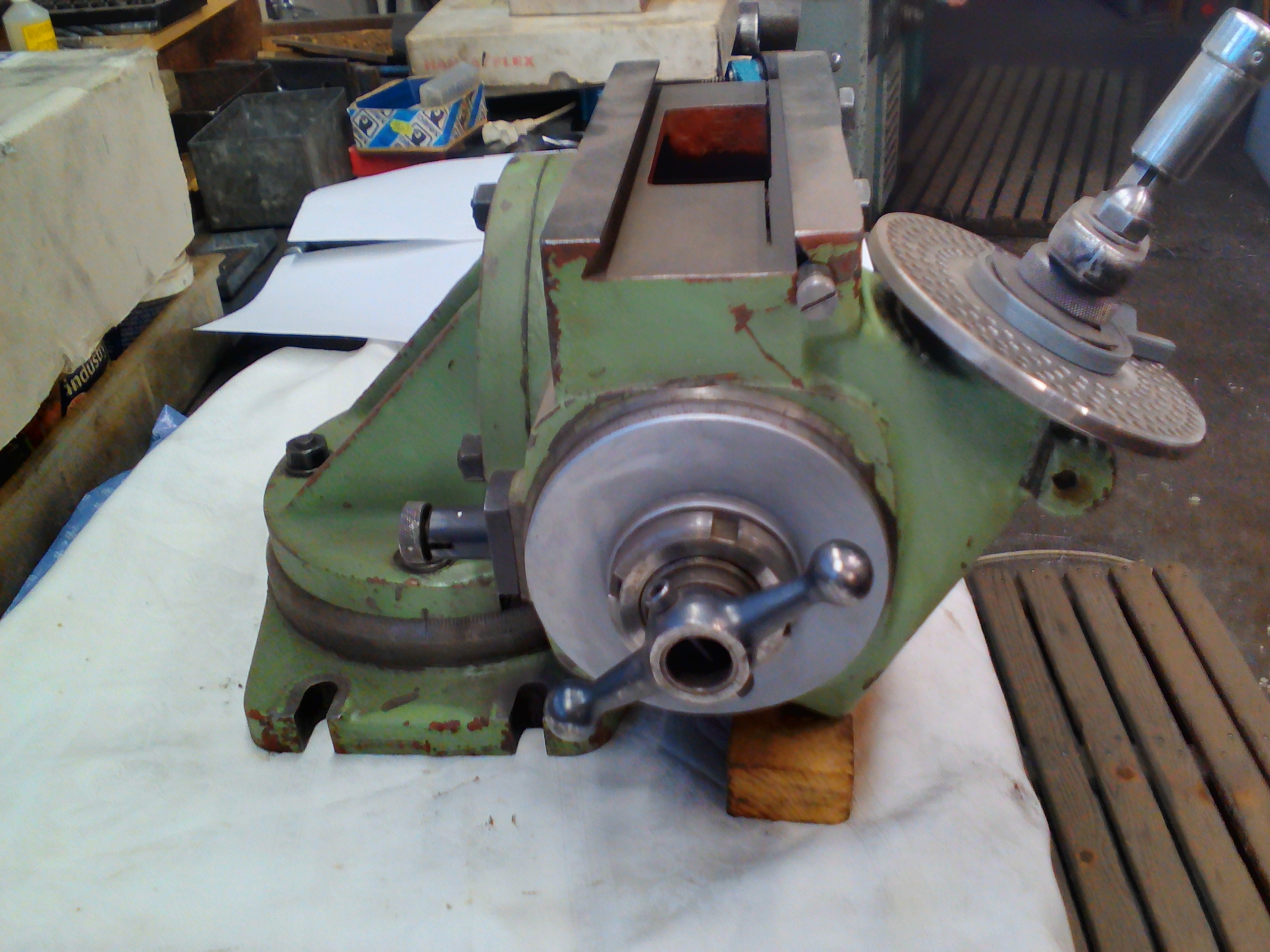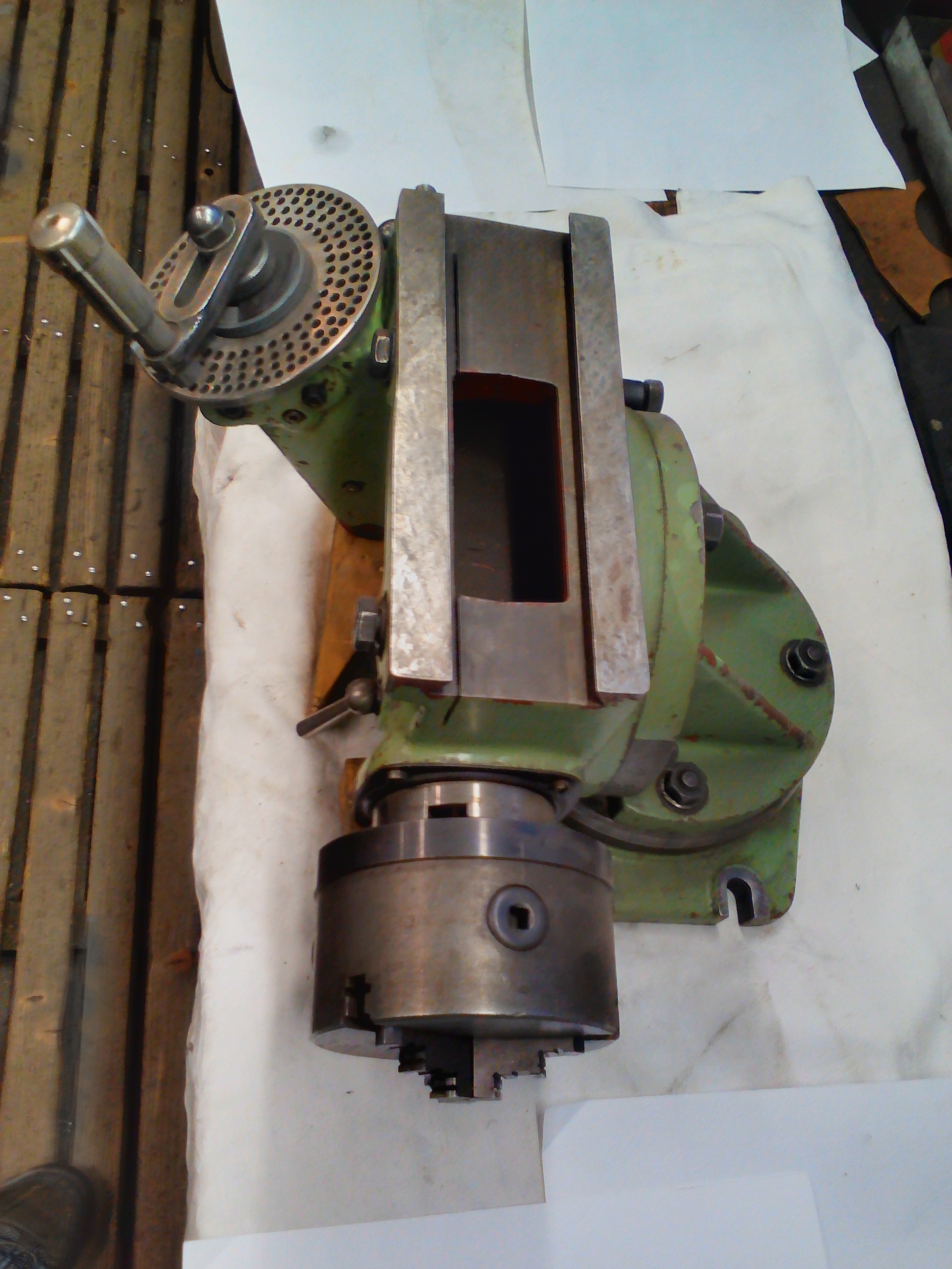 A ještě jedna věc... Často mám tu DU děličku naklopenou tak, že osa otáčení je svisle (+svislé vřeteno frézky)- např. vrtání děr na roztečné kružnici. Vrtám tak ale jen malé díry, protože rozjezd svislé osy mi neumožní upnout delší vrták