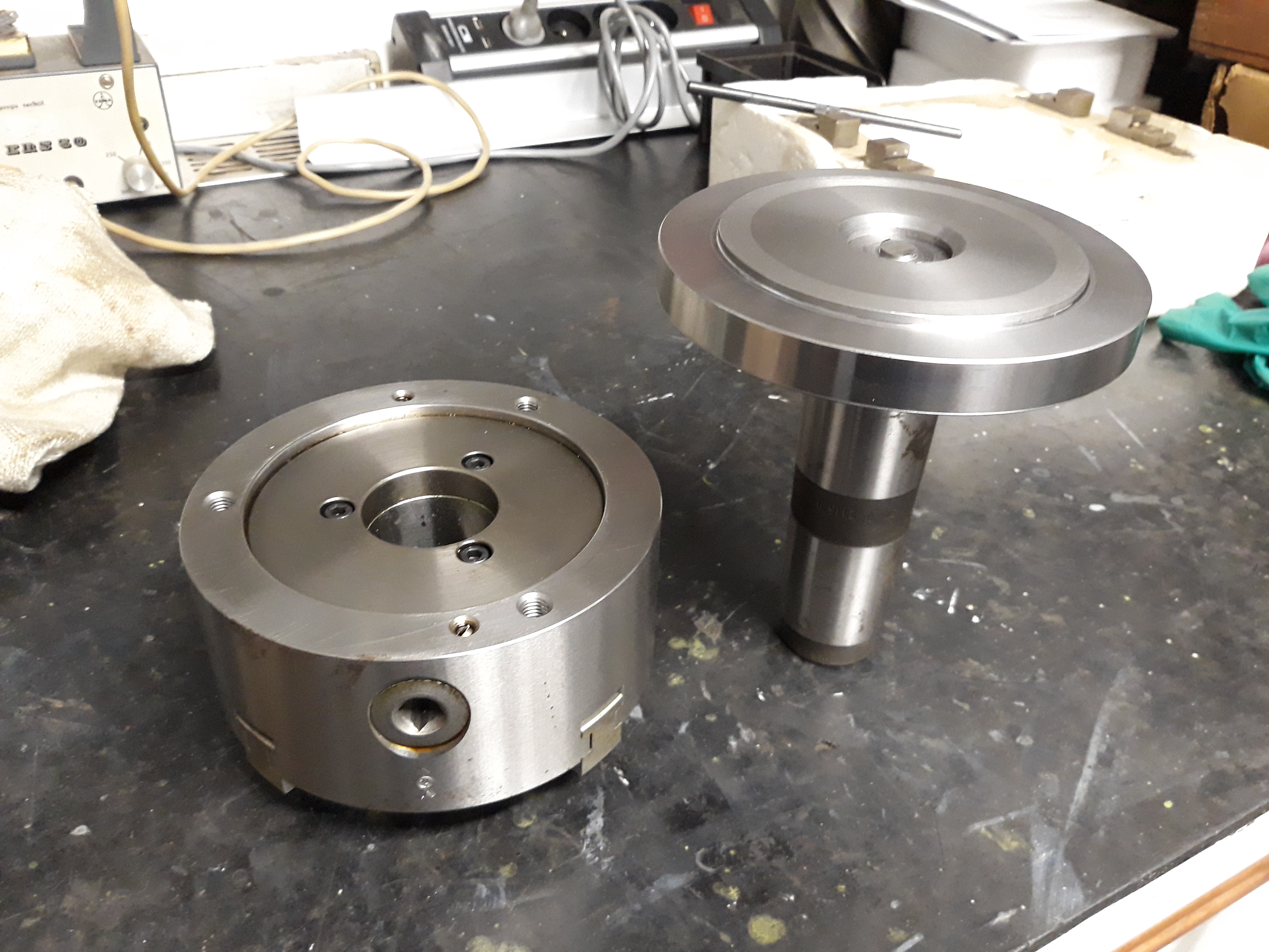 Normálne tam treba naložiť húsenicu, potom prírubu založiť do brúsky, prebrúsiť čelo a priemer a založiť skľučovadlo. Malé príruby do 200mm sa dajú robiť z jedného kusu, aj keď polotovar má cca 30kg, ale u väčších si to neviem predstaviť. Ja som robil prírubu 340mm priemer, a to sa z jedného kusu nedá.
