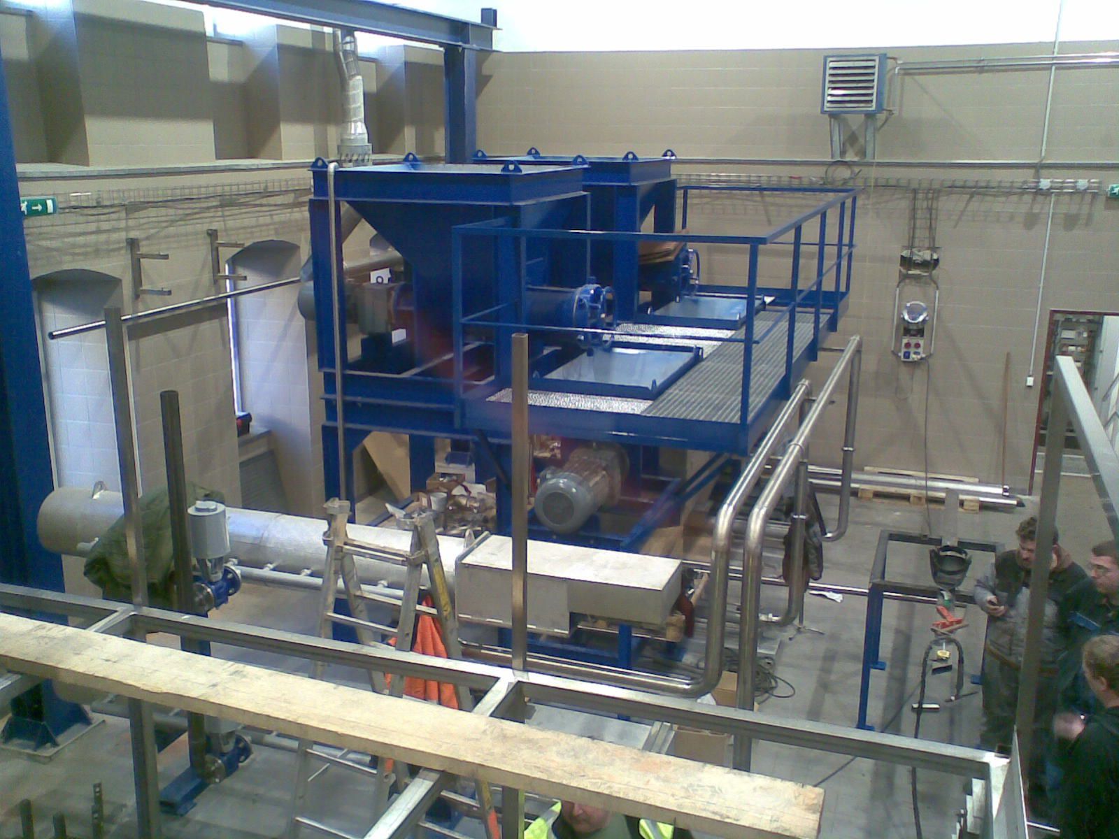 Doprava je z venkovního zásobníku hydraulickým pístovým čerpadlem s výkonem 6t/hod trubkou DN150.