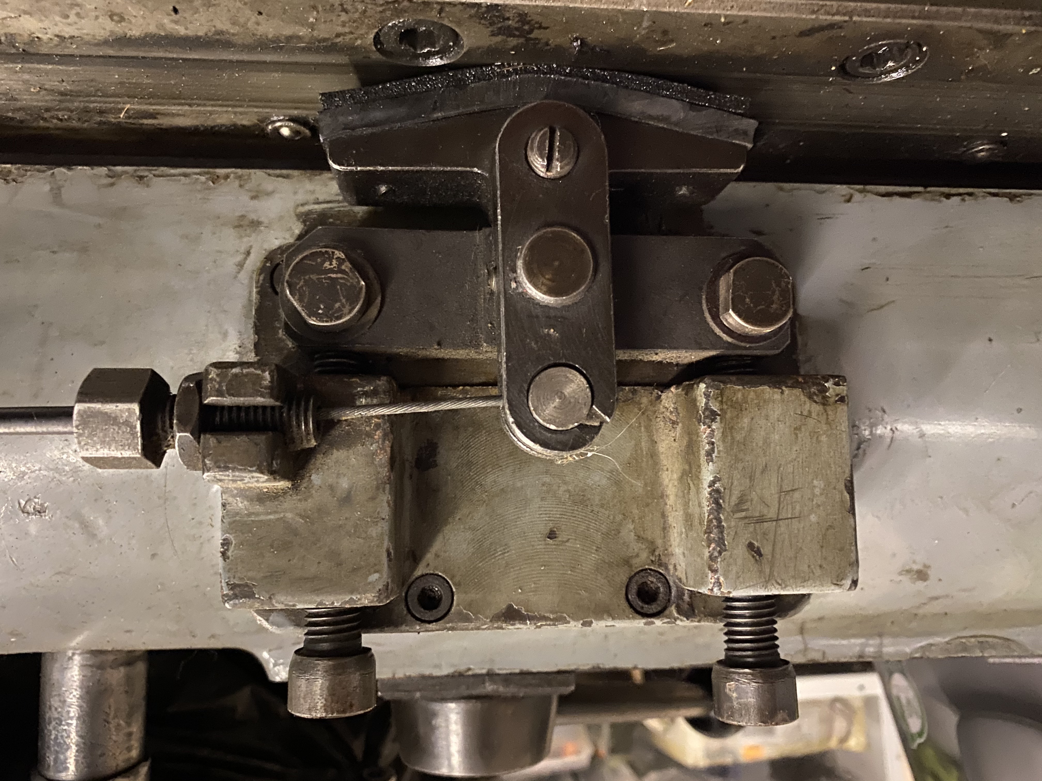 Ten systém je stejnej, akorát ten novější tahá za lanko zvenčí, a ten starší zevnitř, Na té plošce je filc. Je přitlačený k ploše a smykem se unáší na jednu nebo druhou stranu a tím tahá za klapačku.