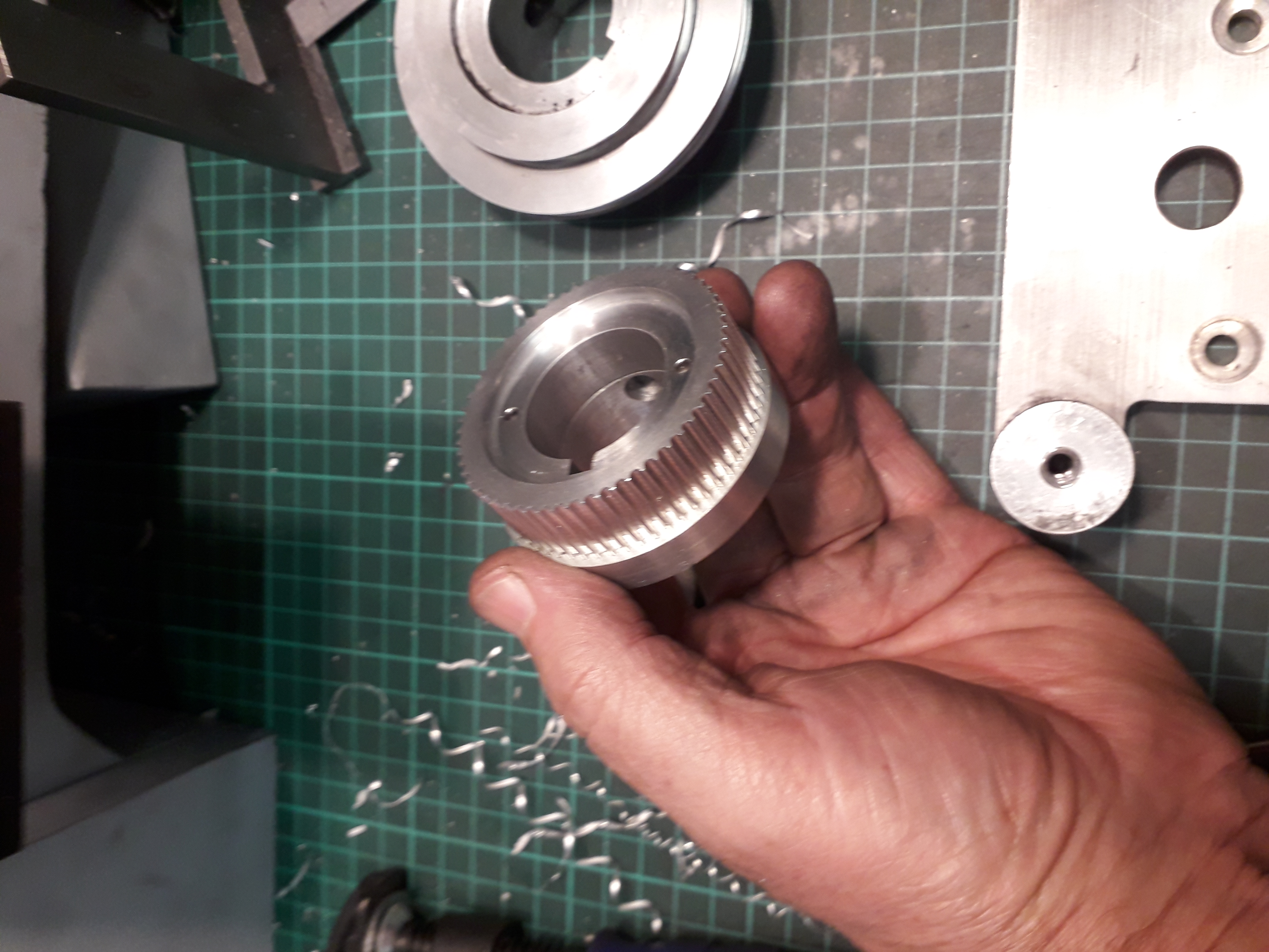 Před časem tady někdo zmínil soustruh Saupe DMT 160 a já si vzpoměl, že jsem ho kdysi začal "vyrábět" a dosud mě leželo torzo tohoto soustruhu "pod stolem". Rozhodl jsem se tedy, že ve stavbě pokročím a dostal jsem se k použití motoru. Vzhledem k dobrým zkušenostem s 550 W servomotorem k šicímu stroji, jsem se rozhodl pořídit další. Koupil jsem ale výkonnější a to 750 W. Při zkouškách na stole jsem byl mile překvapen kroutícím momentem a rozhodl jsem se nejdřív ho namontovat na svoji malou vrtačko-frézku (FPX-25), u které byl motorek 350 W. Kdysi jsem odstranil předlohu a pohon byl klínovým řemínkem přímo na vřeteno, což byla chyba. Frézka neměla dostatečný výkon. Vadilo mě to zejména při vrtání na frézce. Ochrana stále vypínala ikdyž jsem v elektronice přidal. Dělám většinou se železem nebo litinou a úběr byl maximálně 0,5 mm 10-kou tvrdodovovou frézou. Samozřejmě to značně tupilo frézy. A tak výkonnější motor byla výzva. Dnes jsem to dodělal a jsem maximálně spokojen. 10-ka fréza (tvrdokov) do železa na celý průměr (pro porovnání s předchozím). Úběr 3 mm a to bych řekl, že je tak maximum vzhledem k tuhosti zmíněné frézky. Samozřejmě to tak nebudu používat stále, ale zvládne to !!! Otáčky motoru jdou nastavit maximálně na 3600, ale pro moje potřeby dostačující.