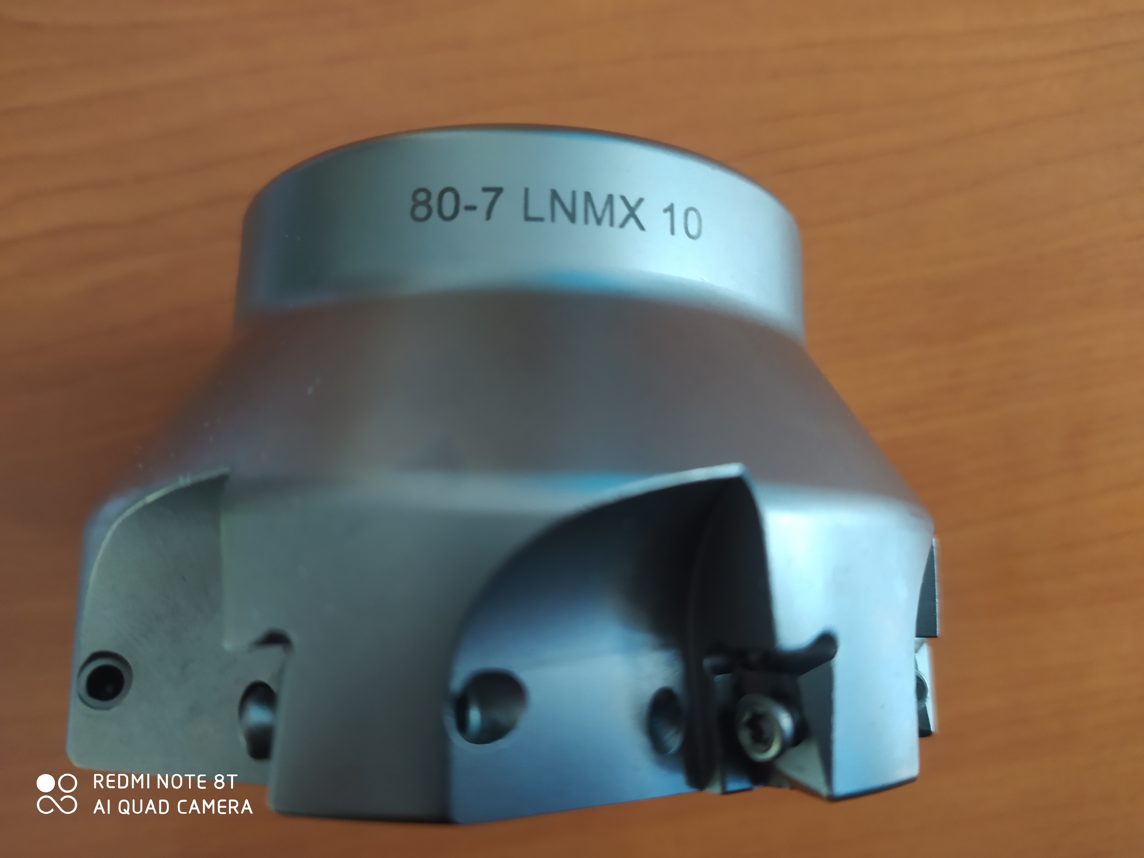 Prodám úplně novou fréz. hlavu, průměr 80,bocni úhel plátků 90st, plus 20 a 20 kusů plátků, viz foto. Cena 9000kc za komplet, možno i jednotlivě- hlava za 2000,krabicka plátků (10ks) za 2000