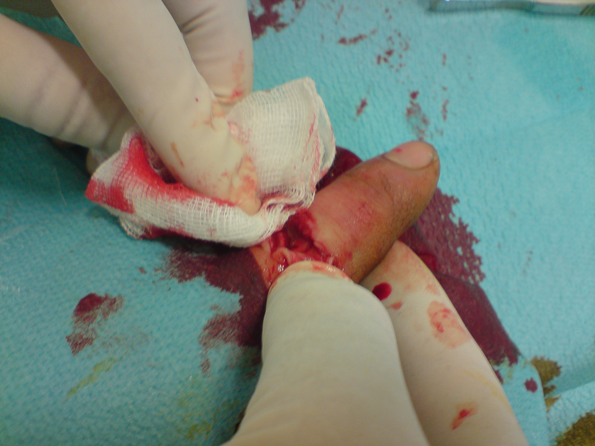 Ten prst je amputovanej nebo jen přikrytej pod ránou?