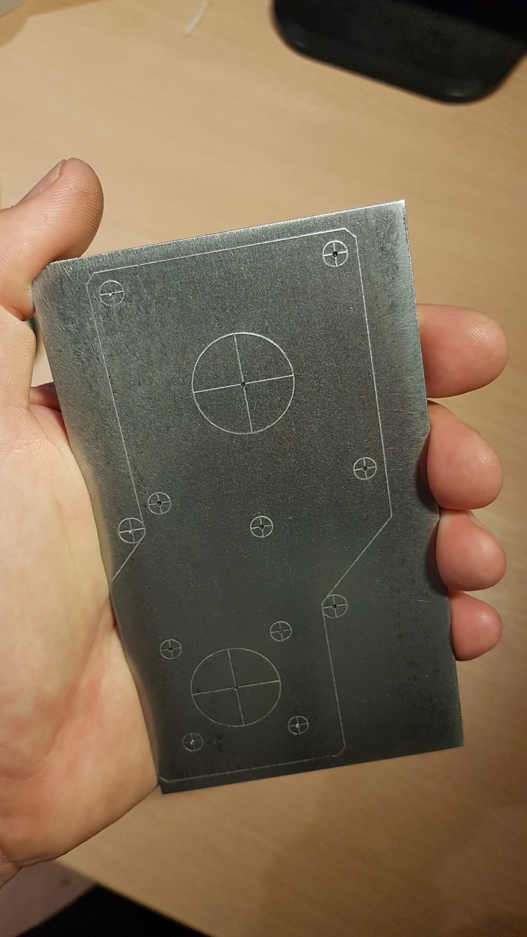 Posledních pár dní jsem ve volných chvílích bastlil generátor sebekompenzujícího gravírovacího g-code (pro LinuxCNC) 8) Občas potřebuji vygravírovat něco na ne zrovna rovný povrch a neměl jsem sílu znovu absolvovat toto martyrium. Vygenerovaný kód si povrch očmuchá a zkompenzuje sám. Ještě jsem se popasoval s okujemi a výsledek se dostavil, spokojen :)