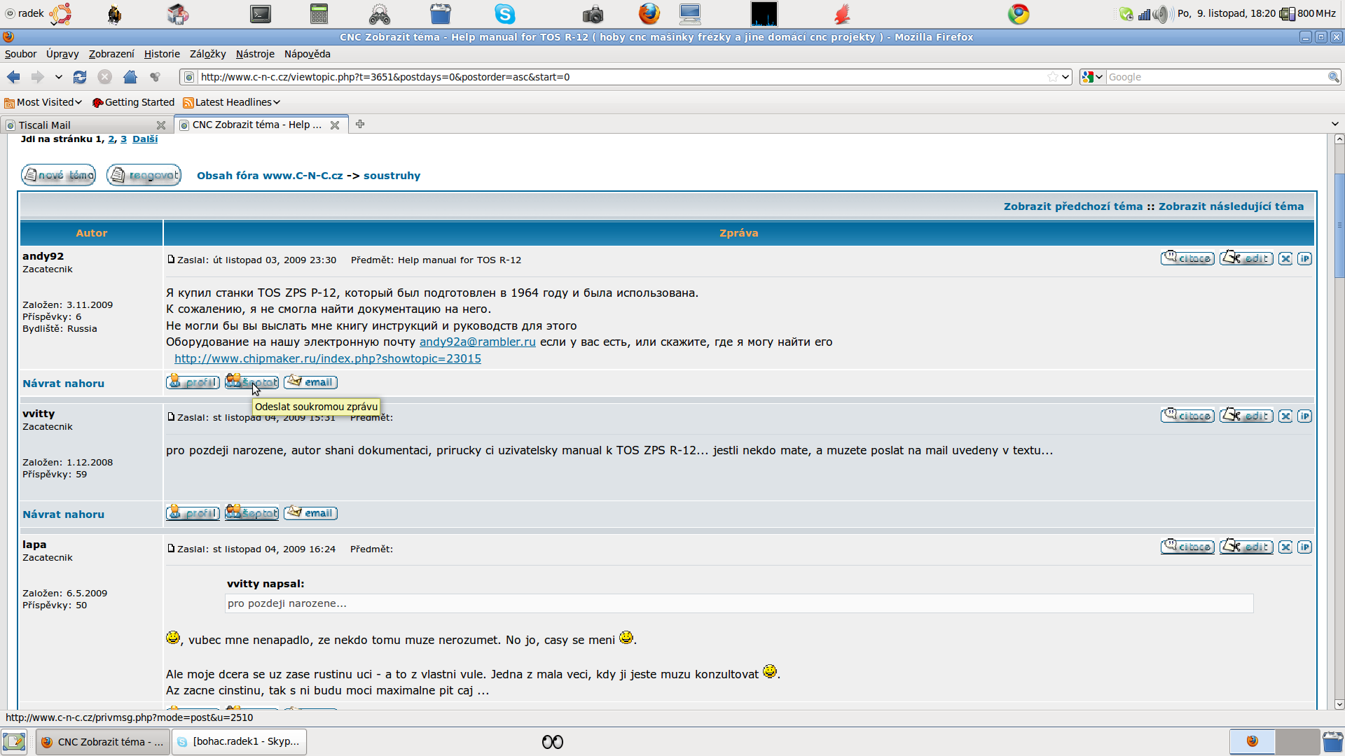 Soukromou zpravu posles klikem u Uzivatele v prispevku na SEPTANI.