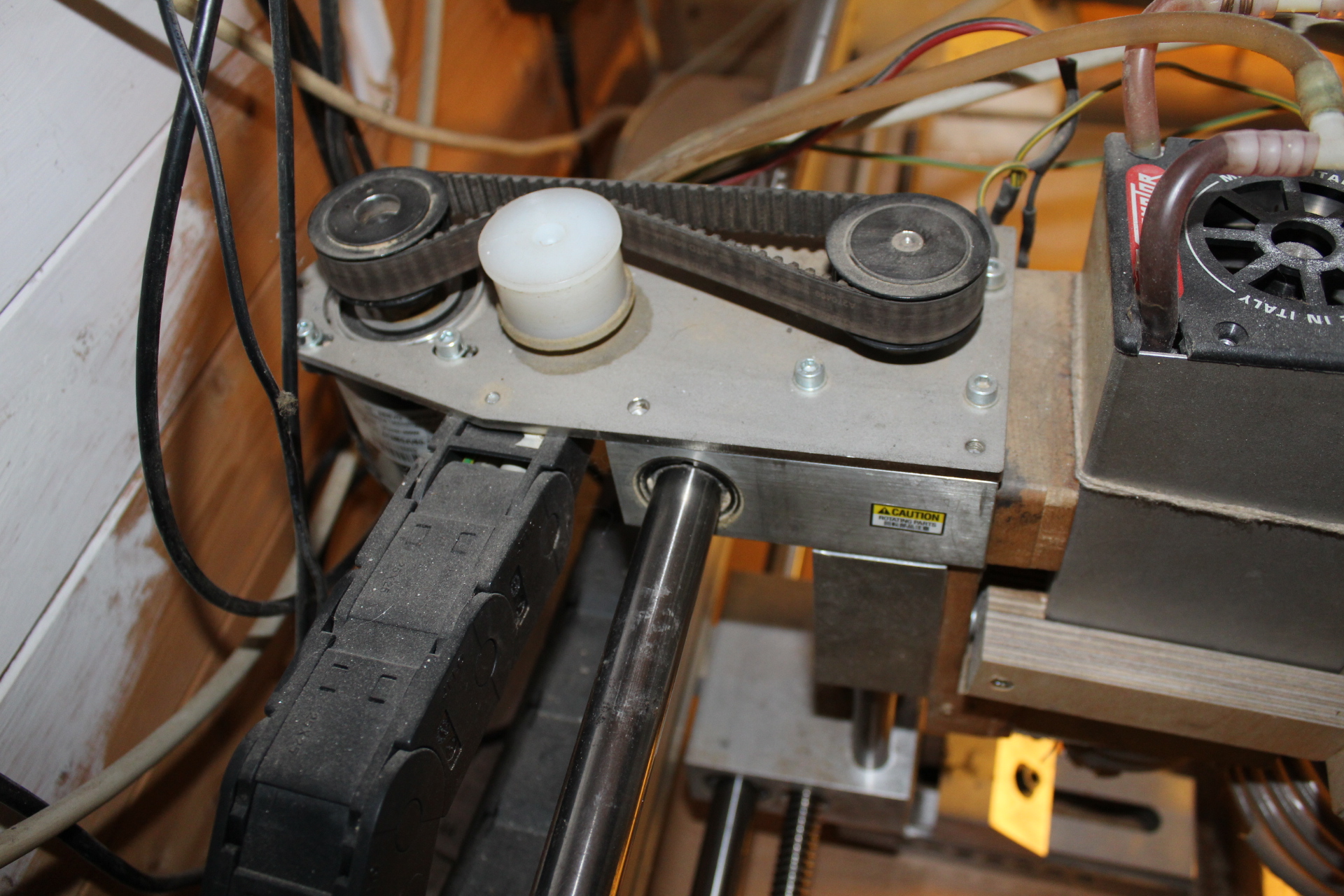 Osa Y 560 - dvě tyče nepodepřené pohon přes ozubený řemen tr. šroub 16mm. bylo v plánu dělat záda, ale vzhledem k tomu k čemu to bylo určeno se to ukázalo jako neopodstatněné