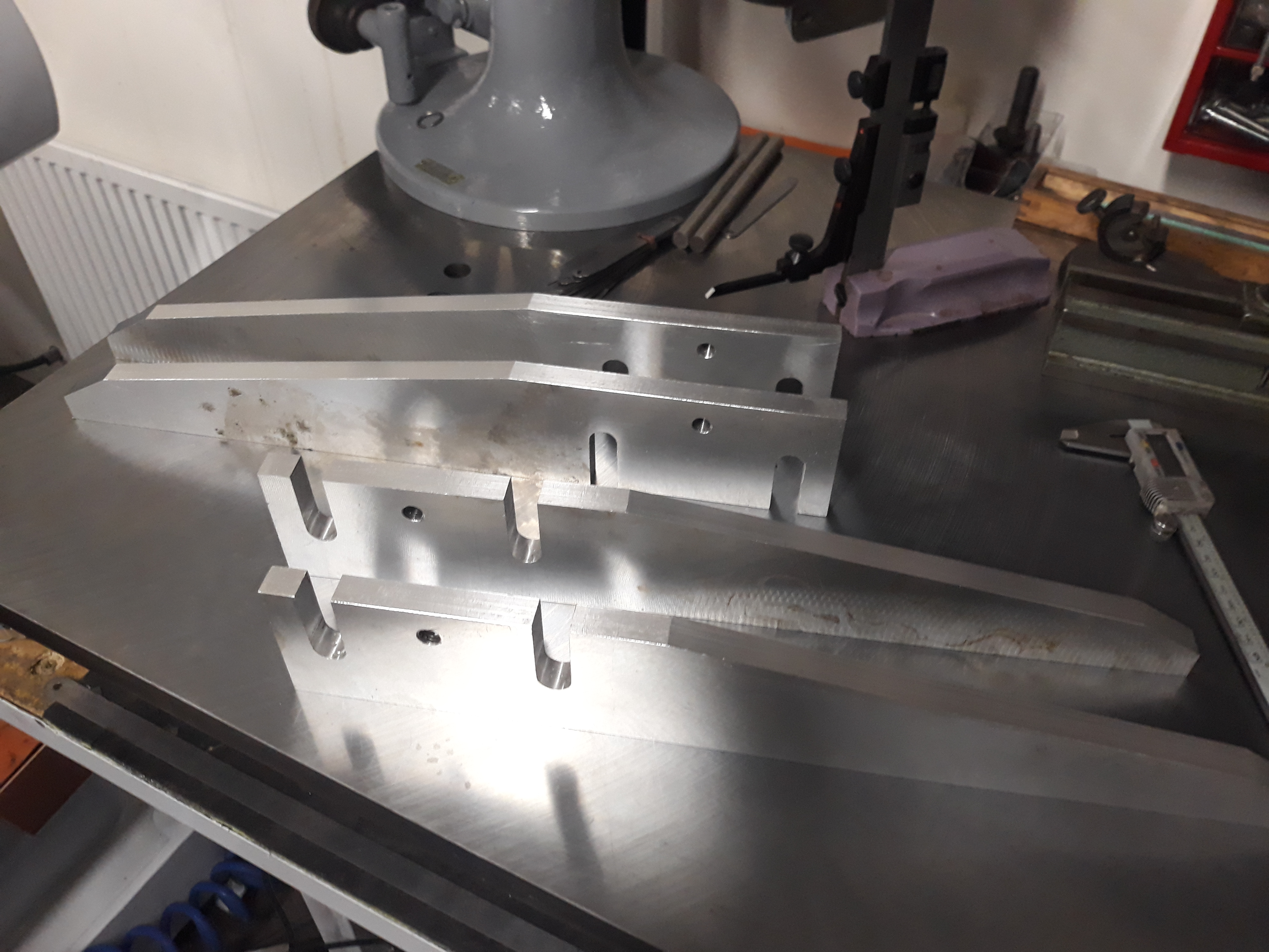 Děláno na mojí hobby frézce, jen hrubý tvar to osekávalo cca 5 hodin (neskutečná výdrž jedný čínský 6mm frézy za 160,-, osekala všechny tři kusy a furt se netvářila že by jí to vadilo, klobouk dolu), pak frézování žeber dalších cca 5 hodin, nějaký ty finishe další hoďka až dvě. Bavíme se o jednom kusu. Musel se udělat poměrně sofistikovaný přípravek na uchycení, což zabralo den laborování, další dva dny laborování s tím dlouhým tenkým nástrojem. Ale je to na místě kde to bude sloužit zřejmě hoooodně dlouho. Takže za mě dobrej job, uspokojil mě po všech stránkách :-)