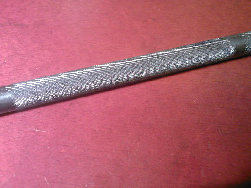Pokusně orádlovaný pozinkovaný hromosvodový drát 10mm. Tím tlakem se drát ohýbal proto je rádlování u volného konce mělčí než u univerzálky