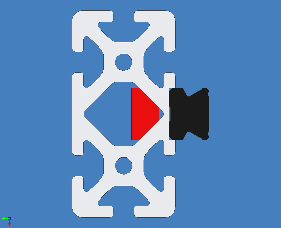 Prave resim zafrezovani kolejnice linearniho vedeni THK SR-20. Chci to pridelat na profil ITEM Profile 8 80x40. Ten ma silu steny 4,5mm. Napadlo me vyfrezovat drazku o hloubce 2,5mm a do te umistit linearni vedeni. Toto vedeni ma zkosene hrany az po vzdalenost 1.179mm pri mereni od spodni plochy na ktere to lezi. Kdyz umistim vedeni do drazky o hloubce 2.5mm tak se bude dotykat s profilem na vzdalenosti 1.321mm coz by mohlo byt dostatecne. Co me trapy je vsak fakt, ze po odfrezovani se profil zeslaby na tloustku 2mm a take budu muset udelat nejaky dil dovnitr profilu ke kteremu budu moci linearni vedeni přitahnout (cerveny dil). Pri dotahovani sroubu vedeni bude tento dil navic rozevirat hlinikovy profil. Co vy na to ? Jak toto vyresit ?