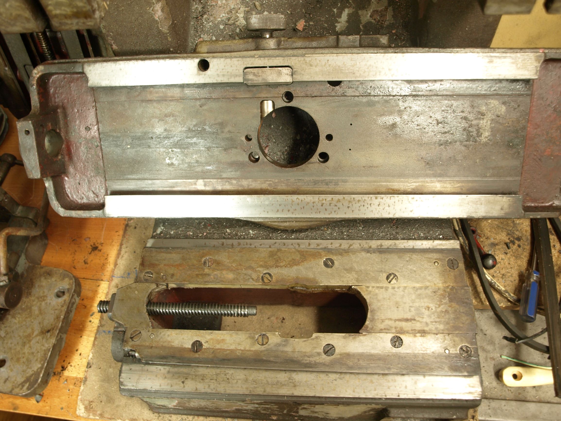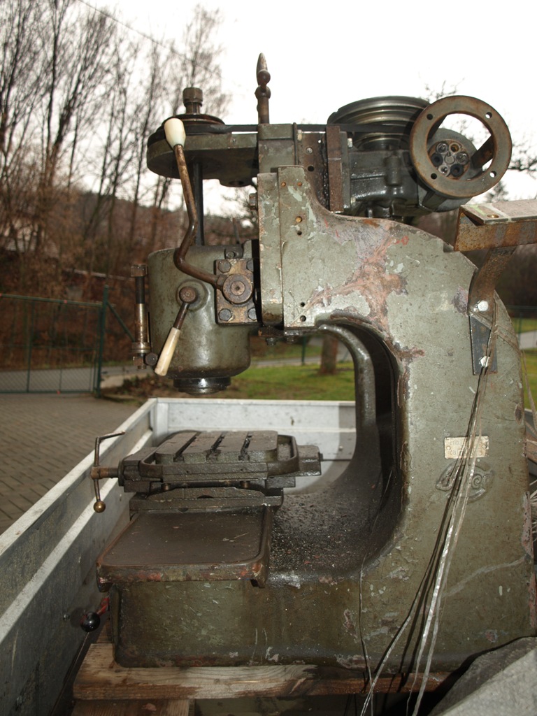 Prvně - býval to nádherný stroj, ale to už nikdo nevrátí. Štve mě to, protože mou bf 20 používám často s otočným stolem na vrtání, ale tady už nemá smysl přemýšlet jak to vrátit do původního stavu. Otočný stůl už je kdo ví kde a ještě někdo zfrézoval rybinové vedení jedné osy. (jedna osa byla zdvojená)