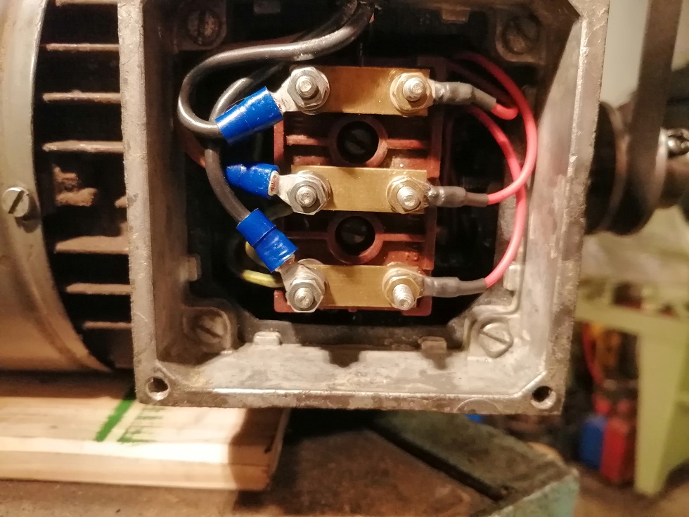 Motor jsem rozdělal, tři stočené konce cívek ve statoru jsem rozpojil, napájel a zaizoloval vodiče, přivedl na svorky.(podle svařených konců, to nepředělával žádný amatér-spíš navijárna)