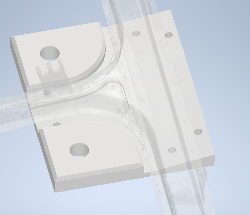 booleovské parametrické 3D je mojím cieľom, ale samotná rekonštrukcia skenu nie je potrebná. nástroj nie je odtlačok tohto výlisku. je to trochu zložitejšie, aby to potom bolo trochu jednoduchšie.
