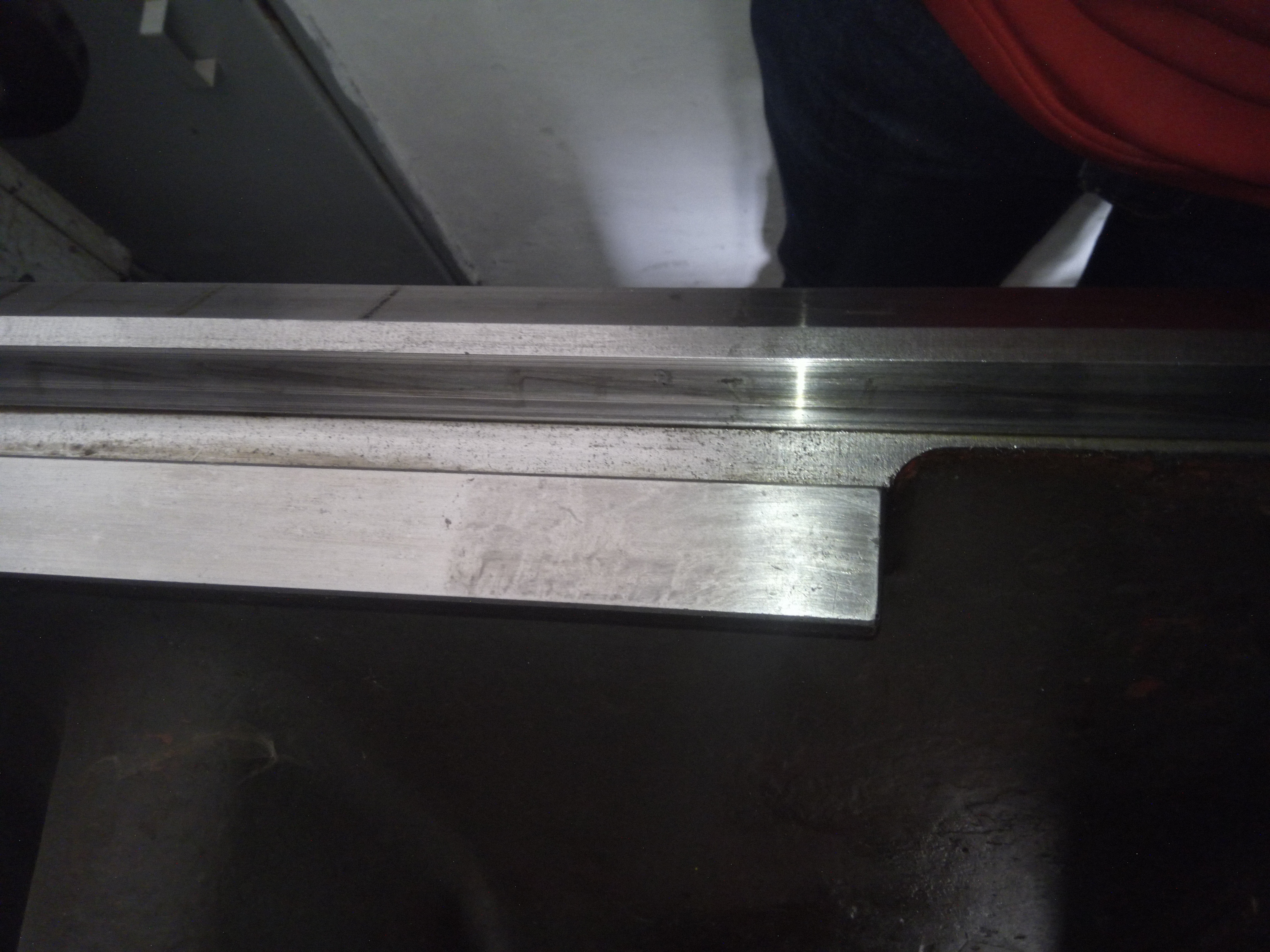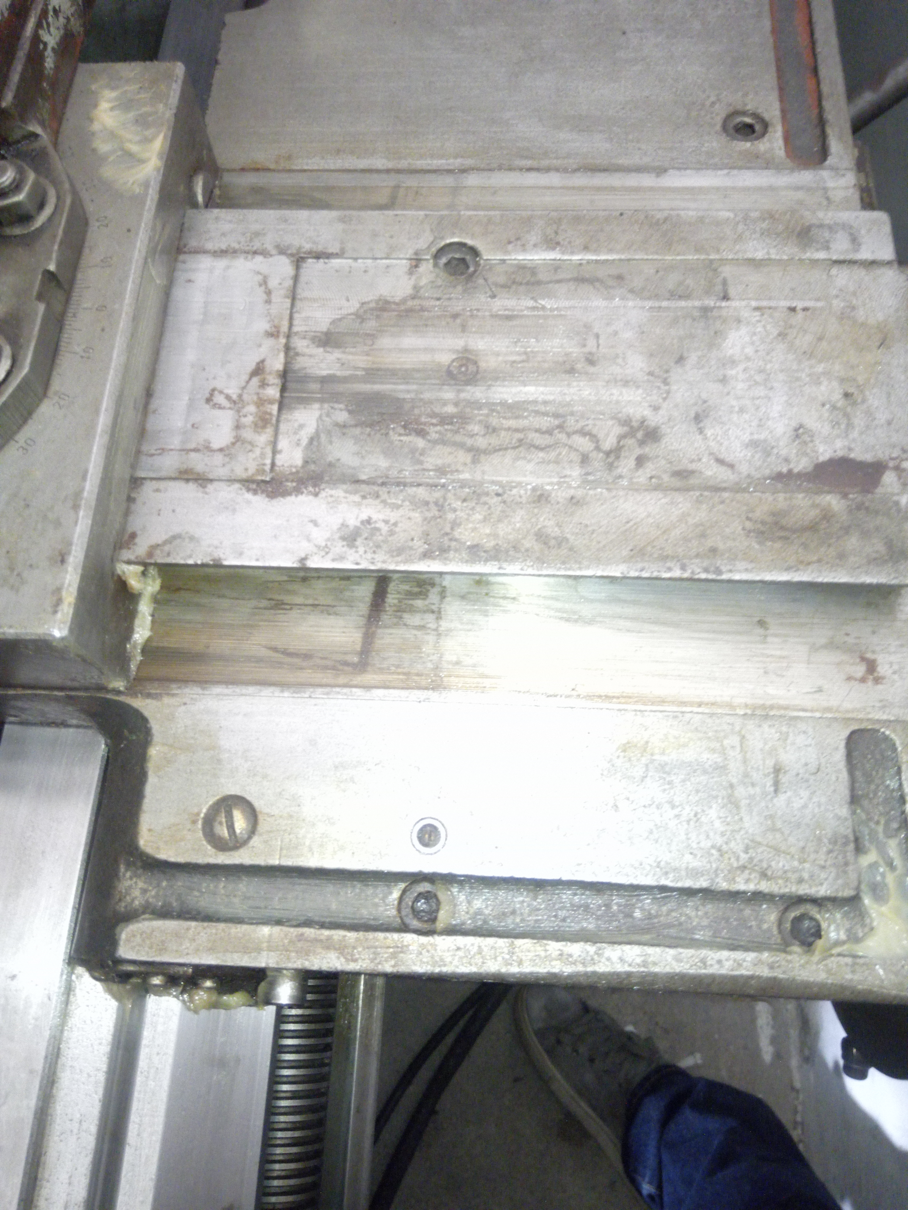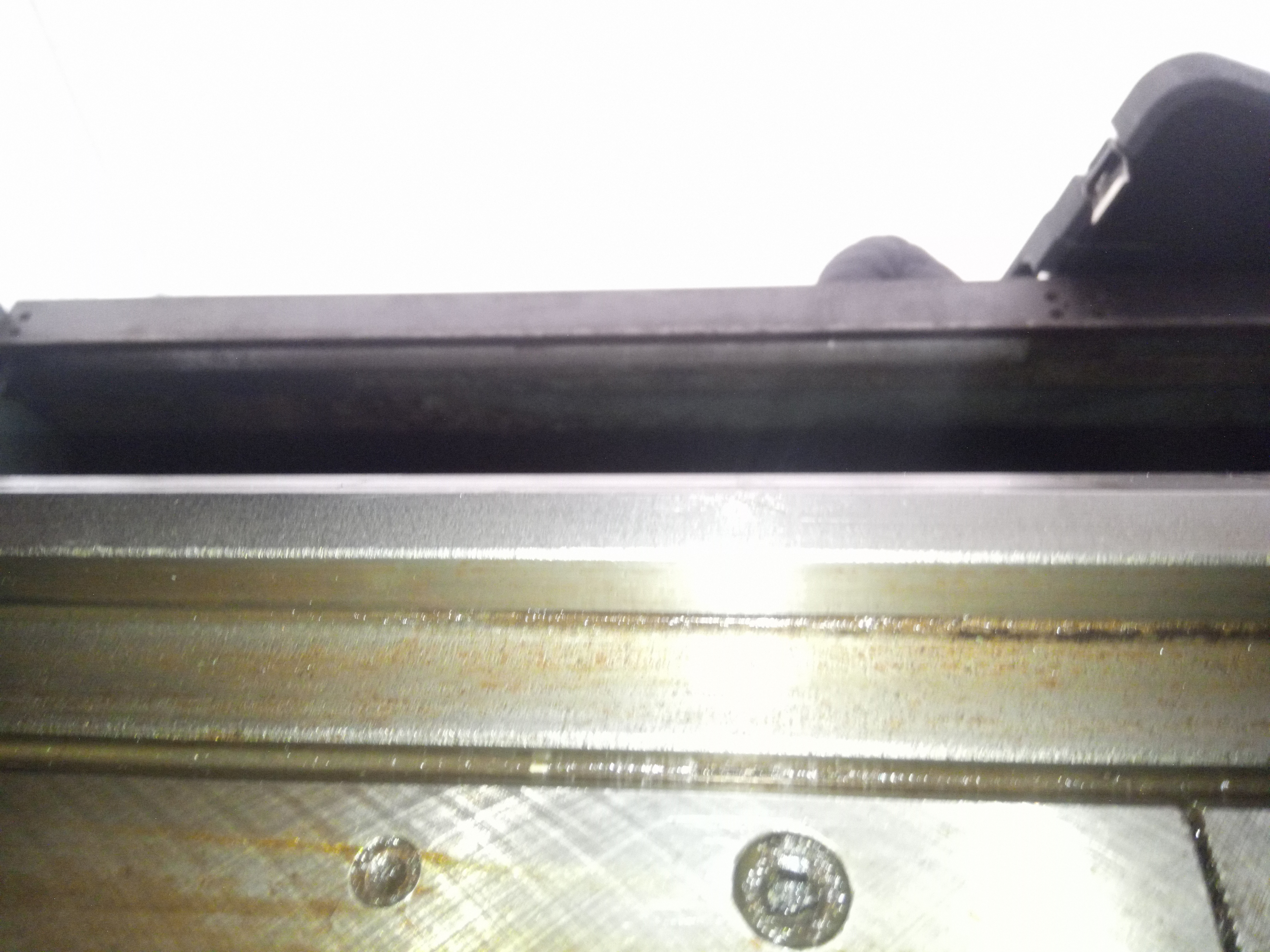Pricny posuv ma nerovnomerne usili, v krajnich polohach to "vazne", na fotce je videt ze jsou tam kousky korozi na konci plochy pro pricny posuv. Ale ta koroze neni rovnomerna, vypada jako kdyby tam dostalo par kapek vody, tady ne tak ze celkova vlhkost byla obrovska i kdyz na druhou stranu je jasne ze urcite nebyla nizka :)