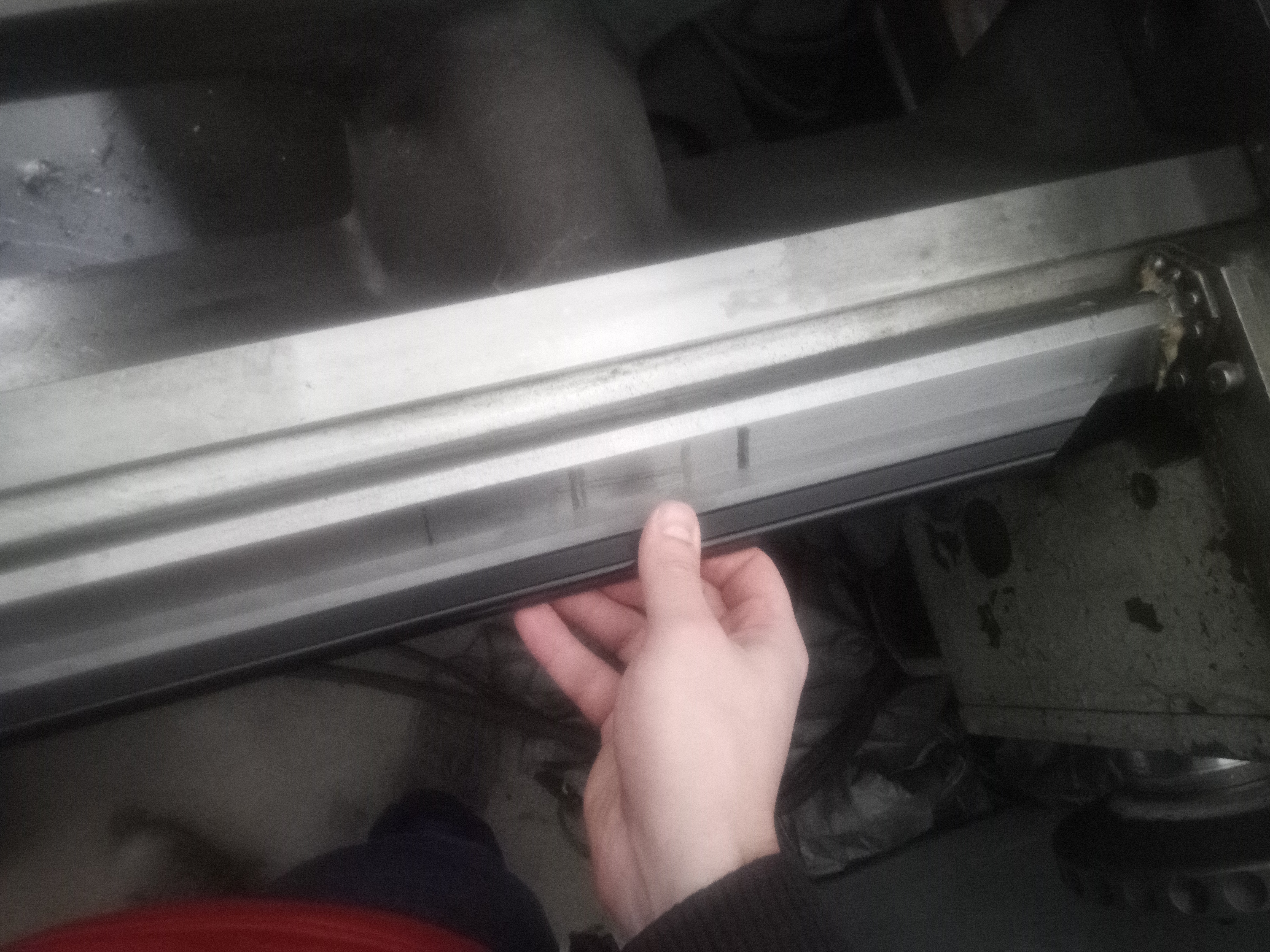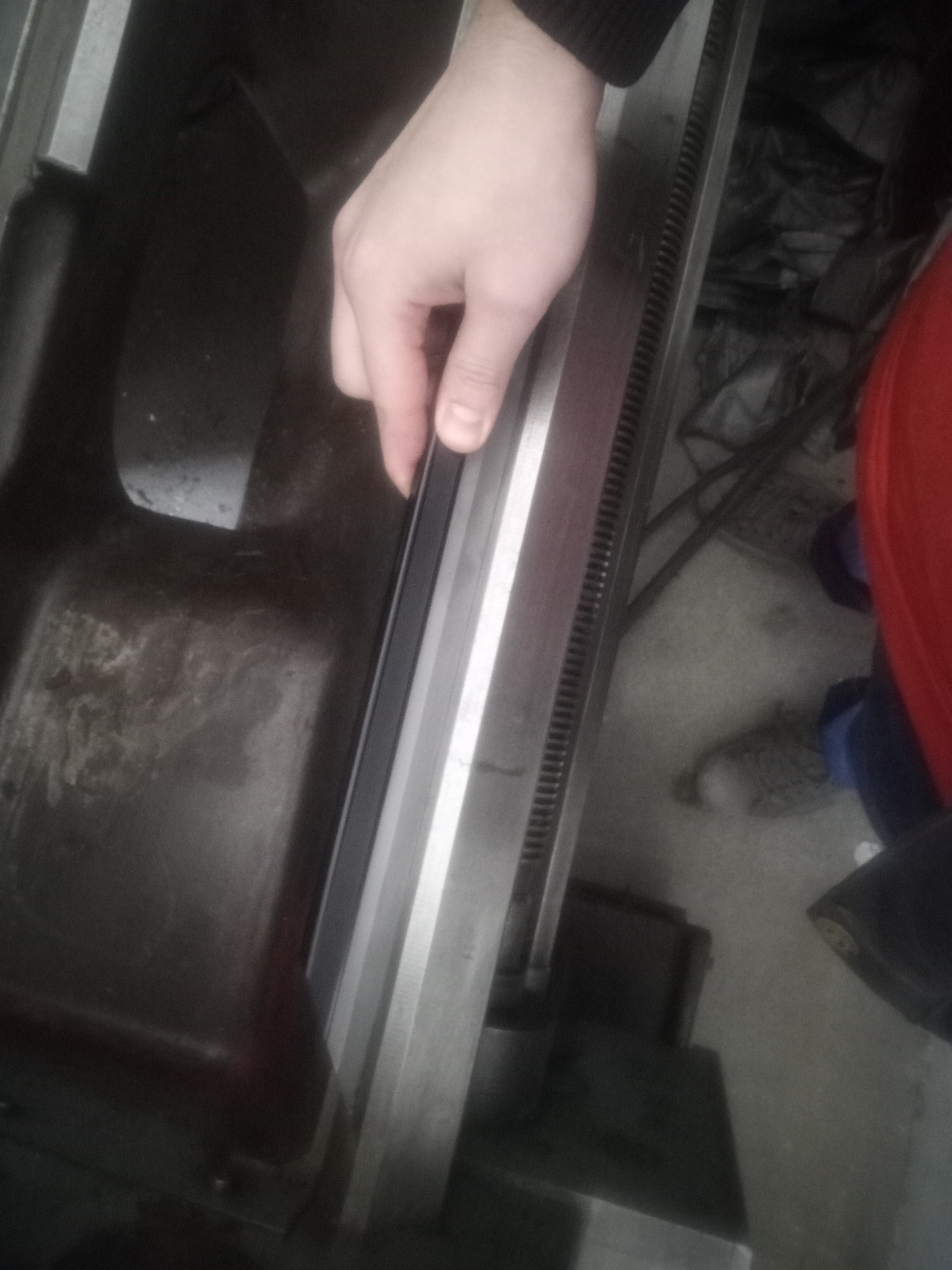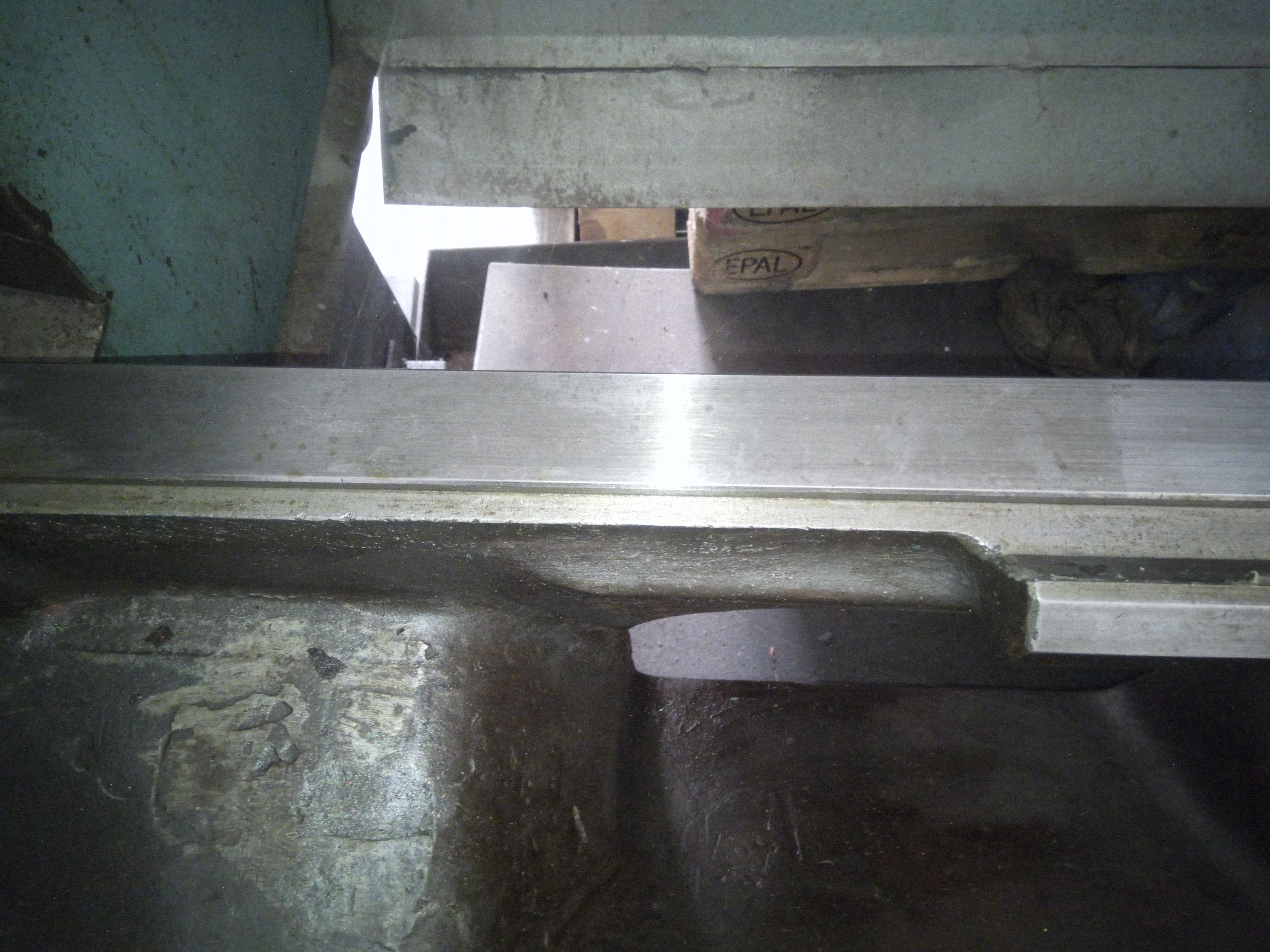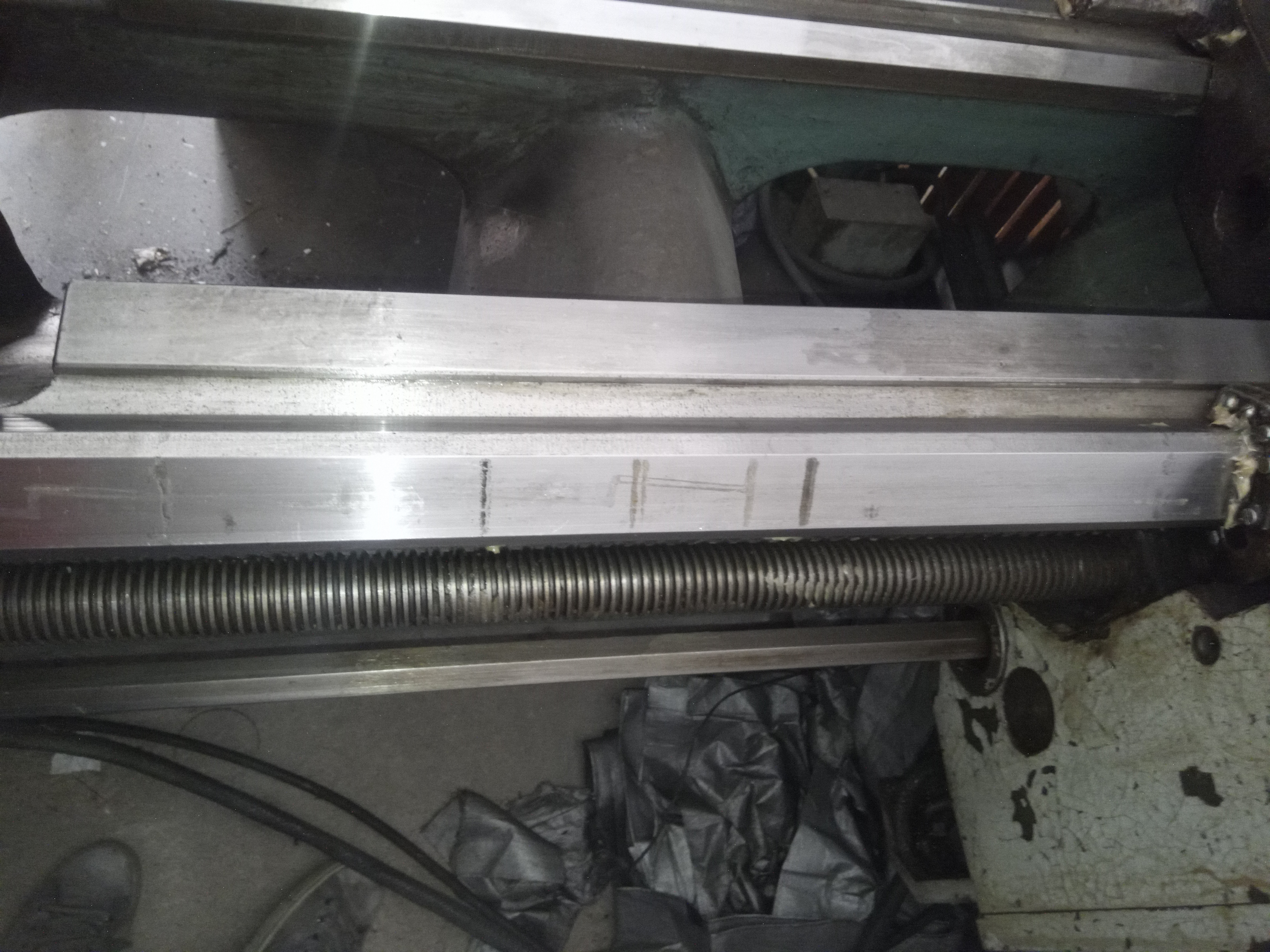 Pricny posuv ma nerovnomerne usili, v krajnich polohach to "vazne", na fotce je videt ze jsou tam kousky korozi na konci plochy pro pricny posuv. Ale ta koroze neni rovnomerna, vypada jako kdyby tam dostalo par kapek vody, tady ne tak ze celkova vlhkost byla obrovska i kdyz na druhou stranu je jasne ze urcite nebyla nizka :)