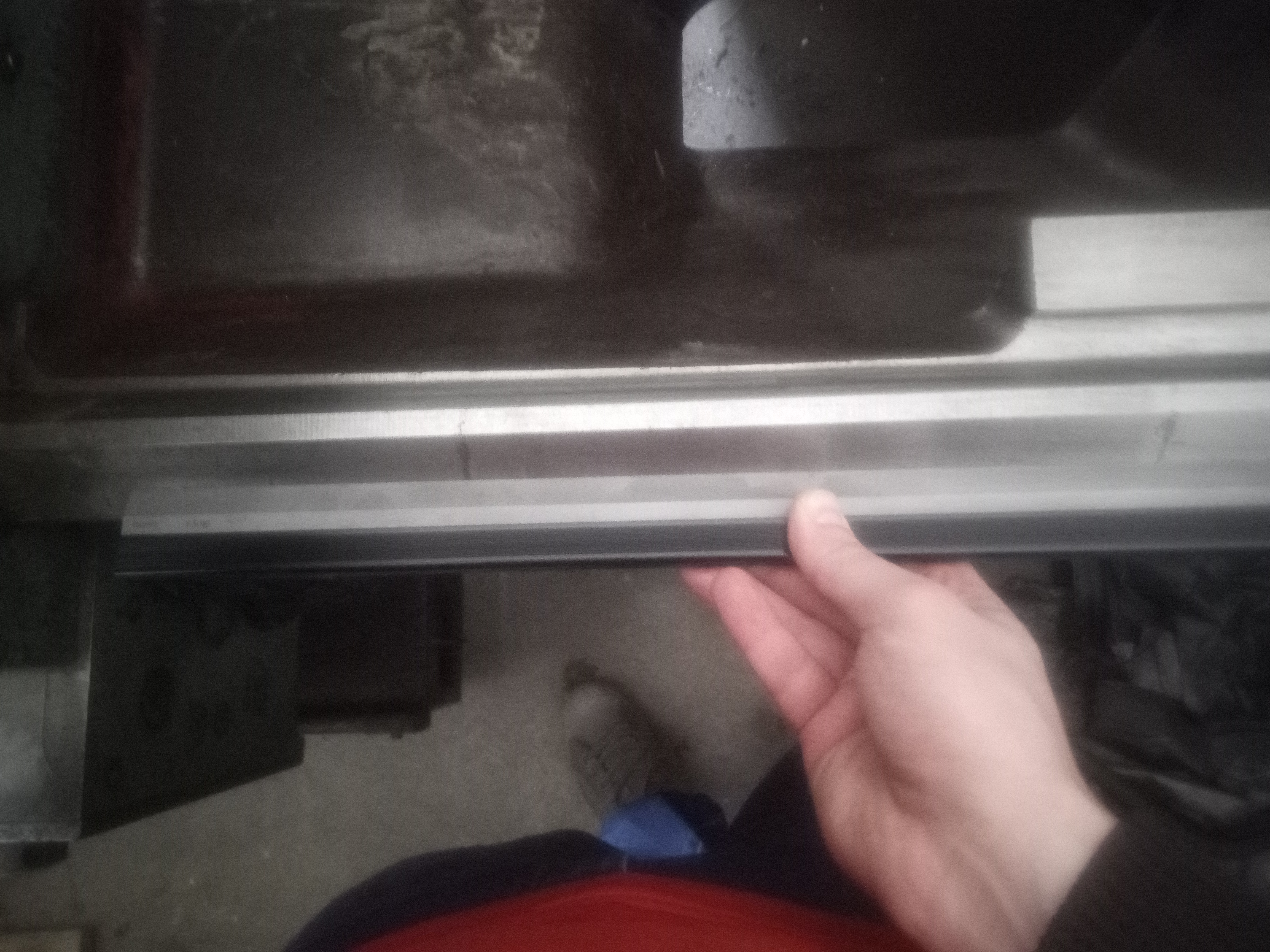 Mel jsem s sebou nozove pravitko 500mm, din 874-2/00, prizmaticka cast vedle vretena ma opotrebeni, na predni strane v nizni casti prizmy podarilo dat merku 0.2mm pod pravitko, 0.25 jiz neslo, na vzdalenosti cca 40cm od vretena ani 0.05 pod pravitko neveslo. Na opacne strane predni prizmy opotrebeni je ve stejnem miste ale tam je max 0.15mm, 0.2 uz neslo tam dat, navic na teto opacne strane predni prizmy to opotrebeni konci cca po 30cm od vretena.