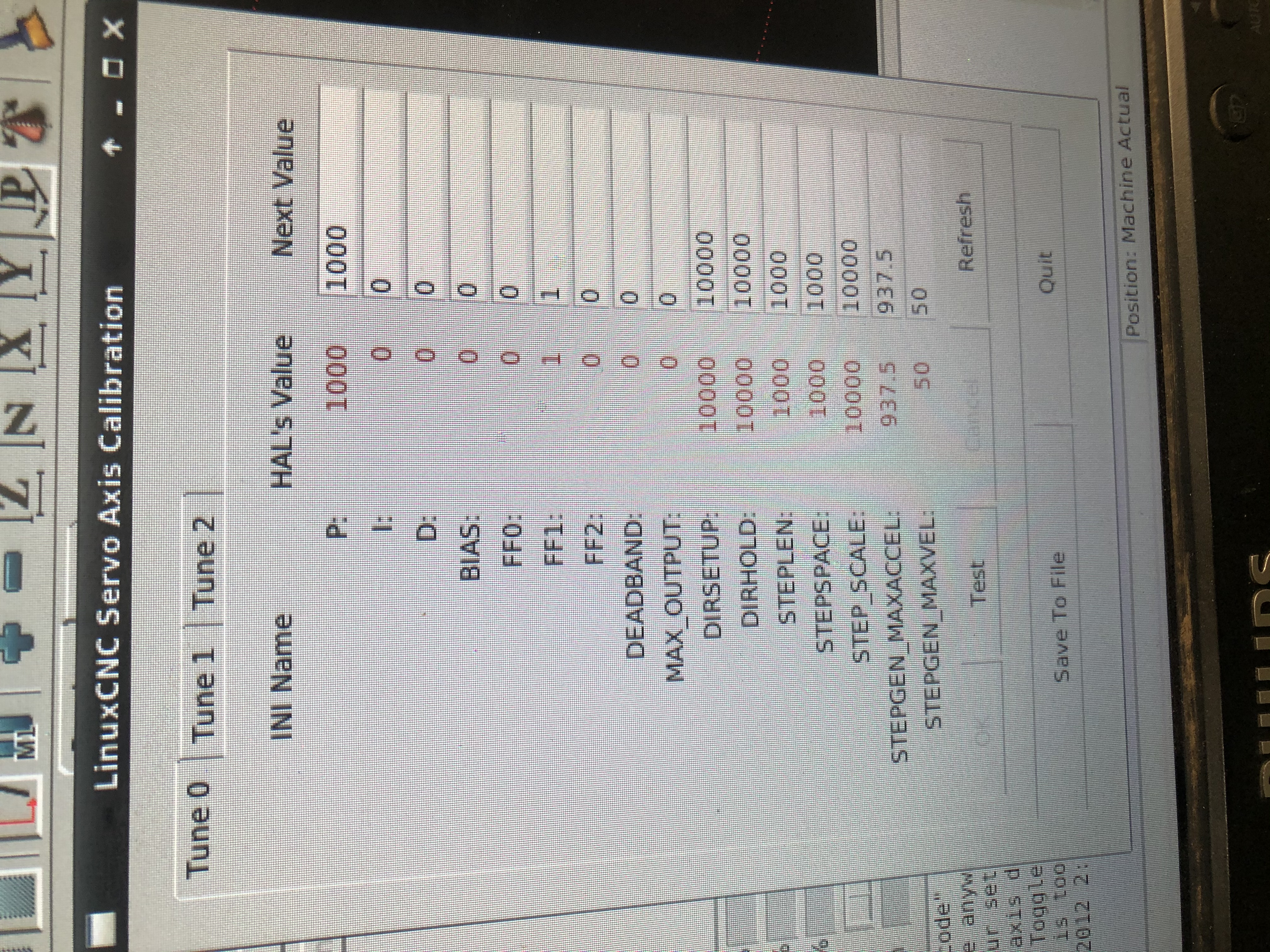Potom jsem provedl tuningové os a v linuxcnc nastavil tuto tabulku: Po preměreni prvního vyrobeného dilu
