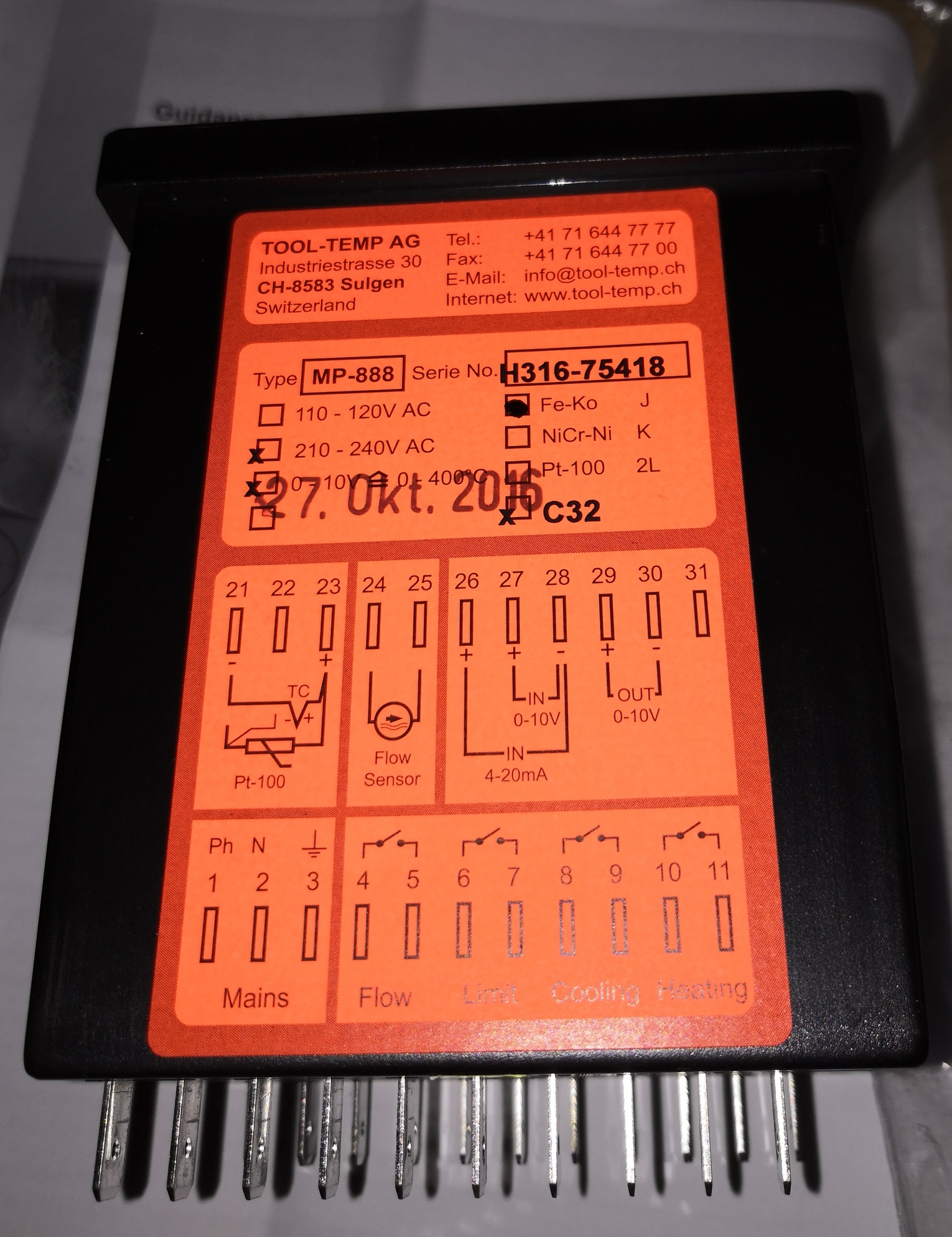 se sem vprdnu ..tento regulátor je pro temperační zařízení určené pro ohřev vstřikovacích forem má dva reguláční výstupy jeden pro topné těleso, které ohřívá technologickou vodu a nebo olej, a druhý výstup spíná chlazení...chladí to tak že v nádrži je buď-to trubkový výměník, a nebo je externí deskový. a onen výstup spíná selenoid který pouští do výměníku chladící vodu. ureguluje to v pohodě na +/- 0,5°C rozsah s vodou je 95°C a s olejem 150°C