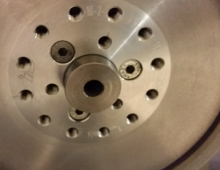 DIA / CBN kotouče se z trnů / nábojů nesundavají a já je neupínám centrální maticí ale pomocí tří šroubků M4. Ty tři závity mezi jsou na odtlačovací šroubky, pomocí kterých srovnám axiální házivost. Ten prstenec závitů okolo je na vyvážení // pokud není vyvážení na trnu //.