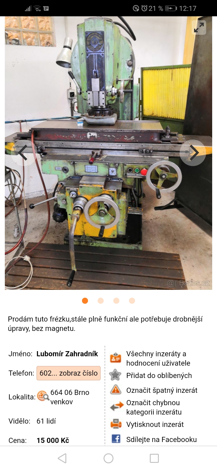 Nástrojařská 675P za 60 000,- nebo dohoda https://stroje.bazos.cz/inzerat/1350963 ... frezka.php