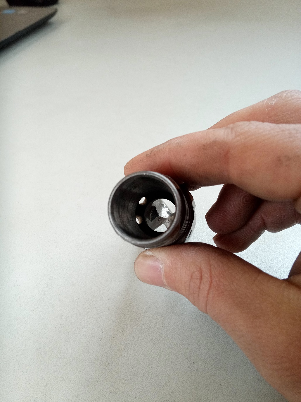 Dobře ti to píše fmodel. Dělový vrták musí mít pilotní // zaváděcí díru // nebo vodítko. Jde nejen o přesné navedení aby neuhnul, ale také se nesmí vrták roztočit, dříve nežli je konec ve vodítku / díře. Je totiž nesymetrický // nevyvážený // a rozkmital by se a "uletěl".