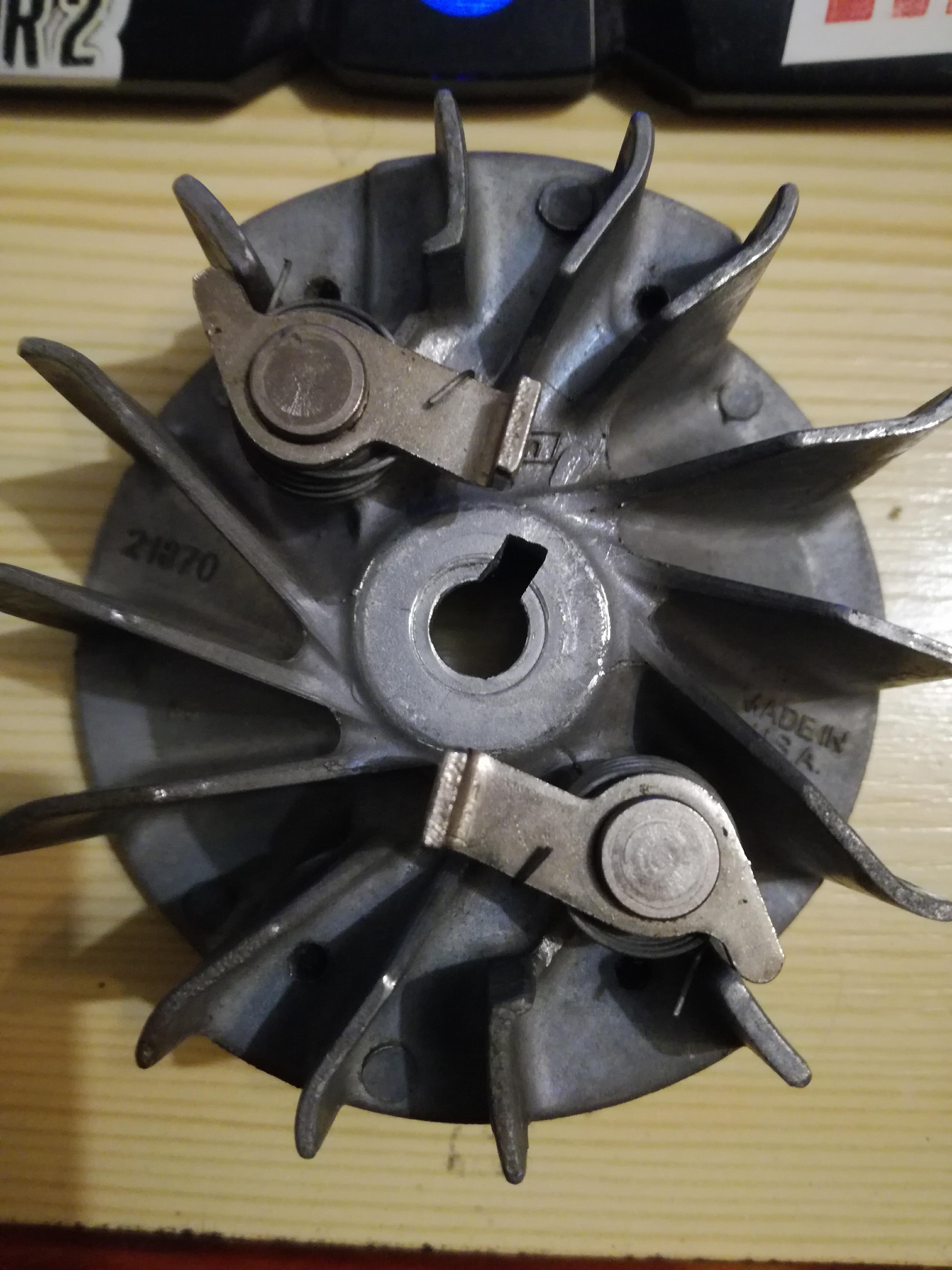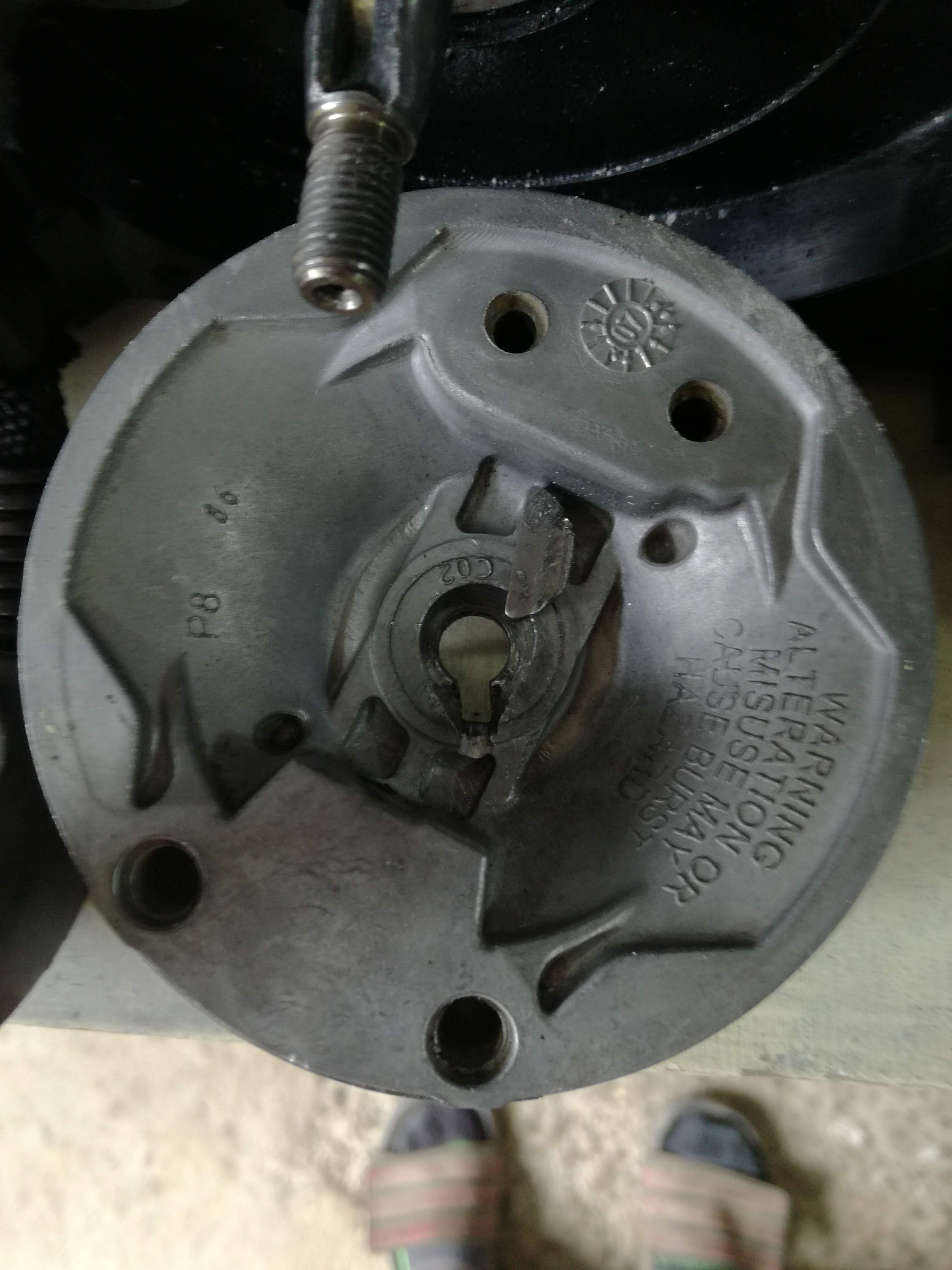 Spojení setrvačníku a klikovký je pomocí kužele a woodrufového pera. Ovšem na původním setrvačníku je to pero jako součást setvačníku je to jeden monoblok.