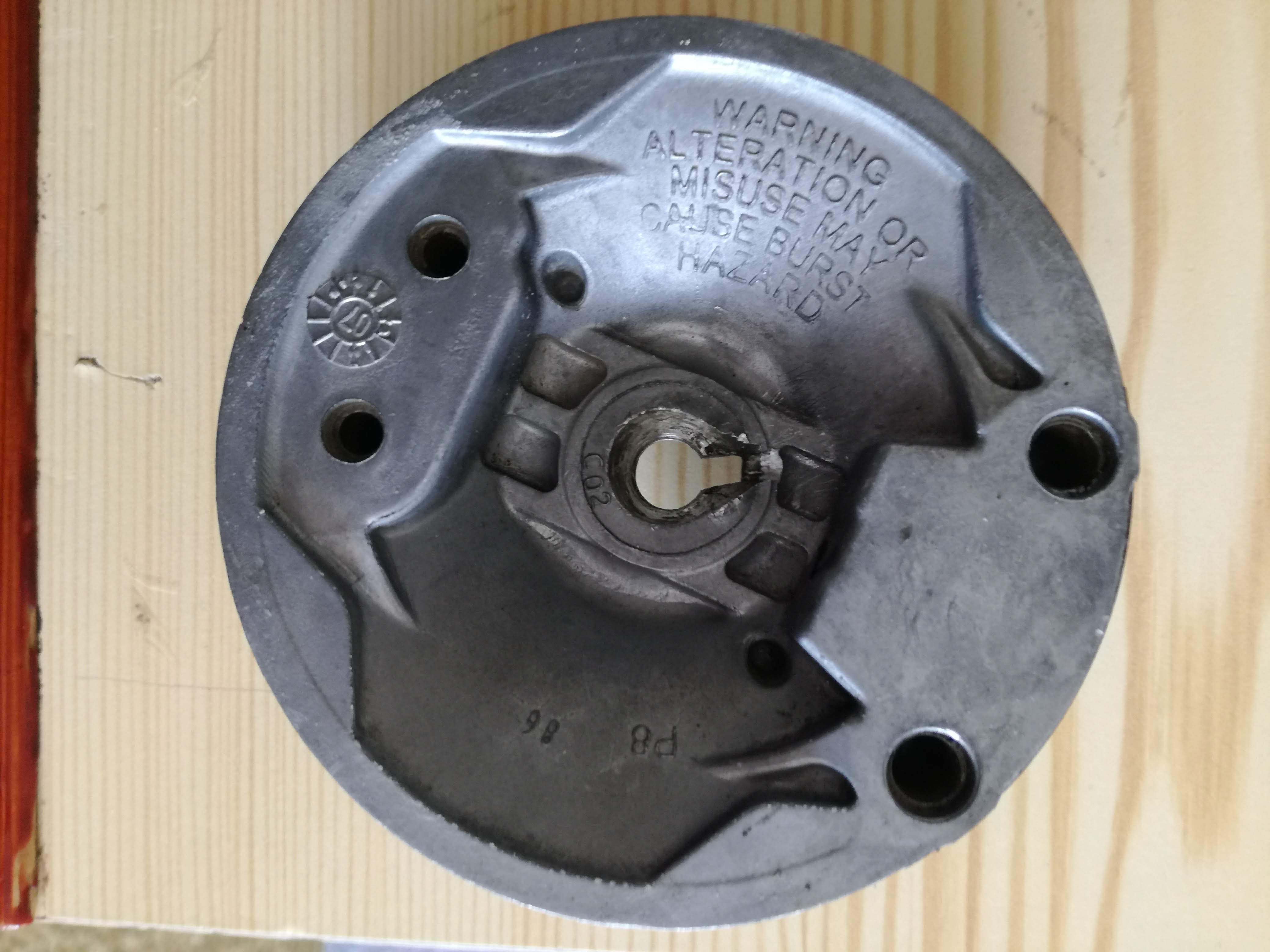 Sehnal jsem druhou klikovku a v květnu rozebral pilu, vyčistil, (na foru je důkaz - jak jsem zoxidoval válec), postupně dál dohromady. Ale jelikož přes léto byly jiné prioririt - zemní práce okolo baráku a dřevo mohu řezát i v zimě. Na podzim jsem to složil zkusil nakopnout, ale málo dotažená matice na setrvačníku, způsobila zalomeni zobáčku.