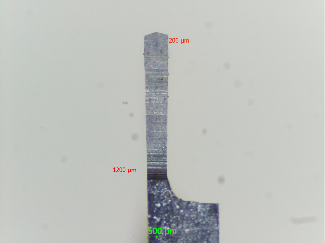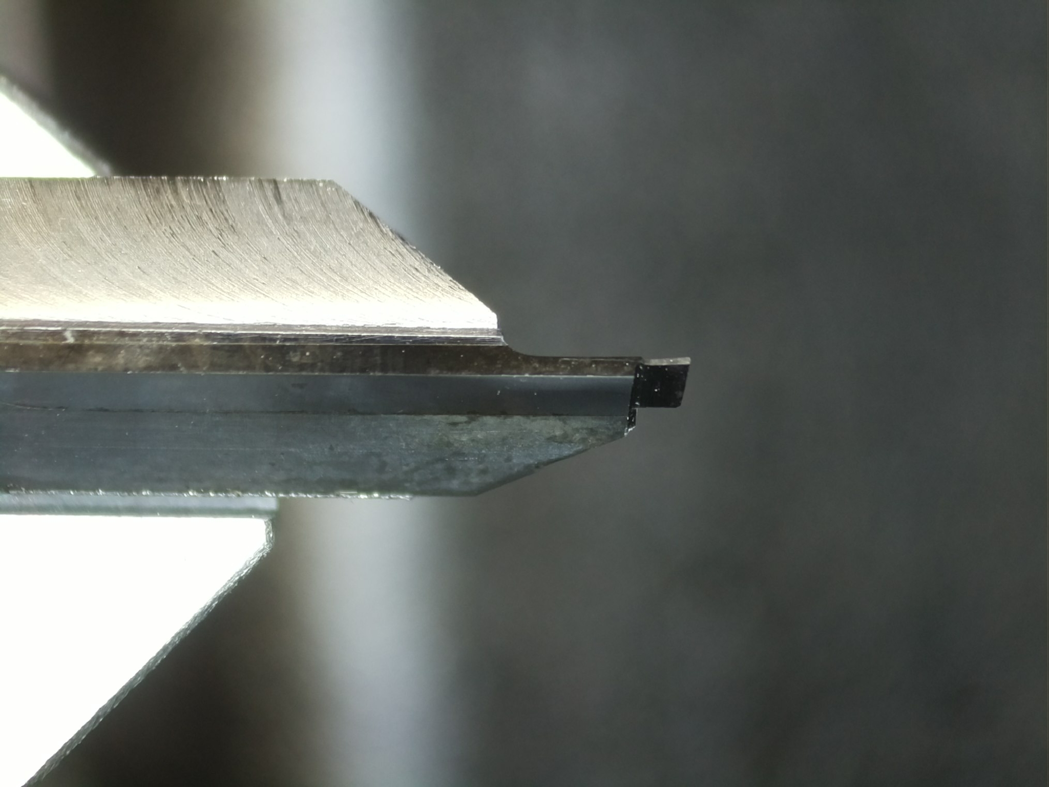 Pájený SK nůž na tvarové zápichy - kotovaná šířka zápichu 0.200+0.008, na dně 2x15° +1° "střecha". Polotovar je Widia 7402, levý (protože to je na levotočivou mašinu - to jsou ty co neexistují :mrgreen: ) rozměr 7x7x140