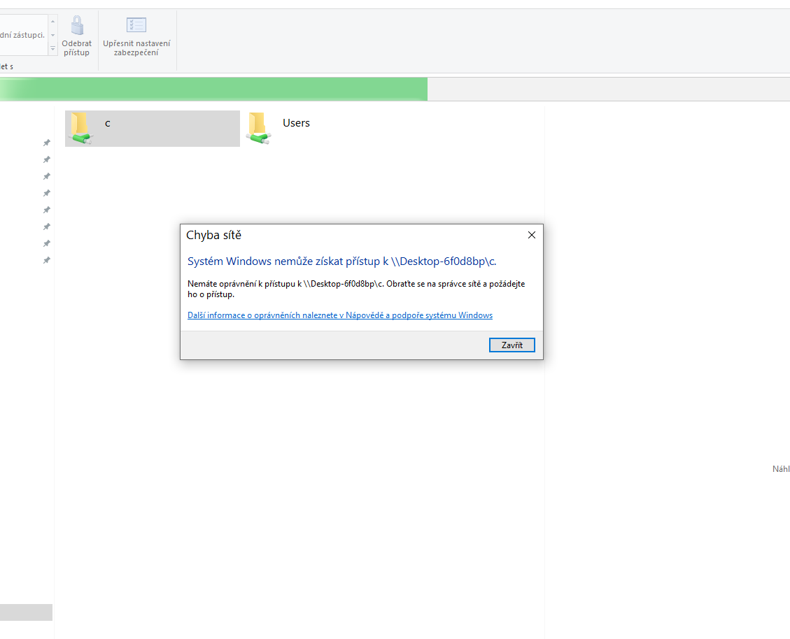 Ale když chci na druhém PC otevřít nasdílenou složku prvního pC - tak na mne vyhopne tohle