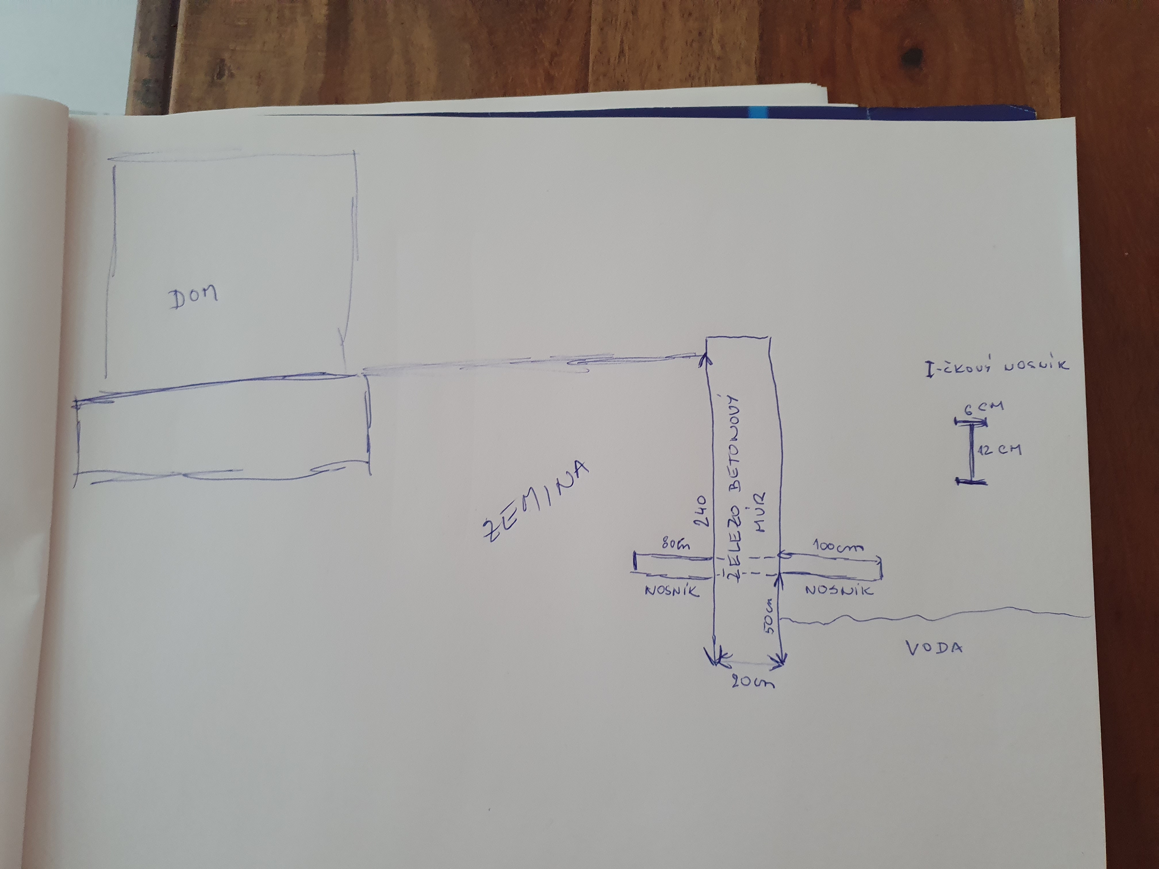 Na ten meter nad vodou chceme potom z dreva dat vyrobiť obrovský drevený crepnik. 5mx1m1m. V ňom bude pochopitelne zemina a rastliny. Co budem mat váhu asi 3 tony. (Pri dazdi a navrhnutí zeme viac). Nákres v prilohe.