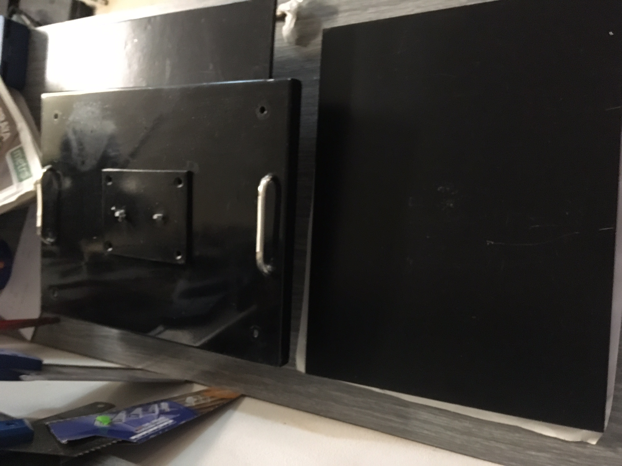 Tak k dispozici je poslední set desky 29x38cm včetně ocelového stolku (spodní pracovní desky) a lakovaného ocelového krytu topné desky s držákem a madly. Sleva - nová cena 500Kč/set.