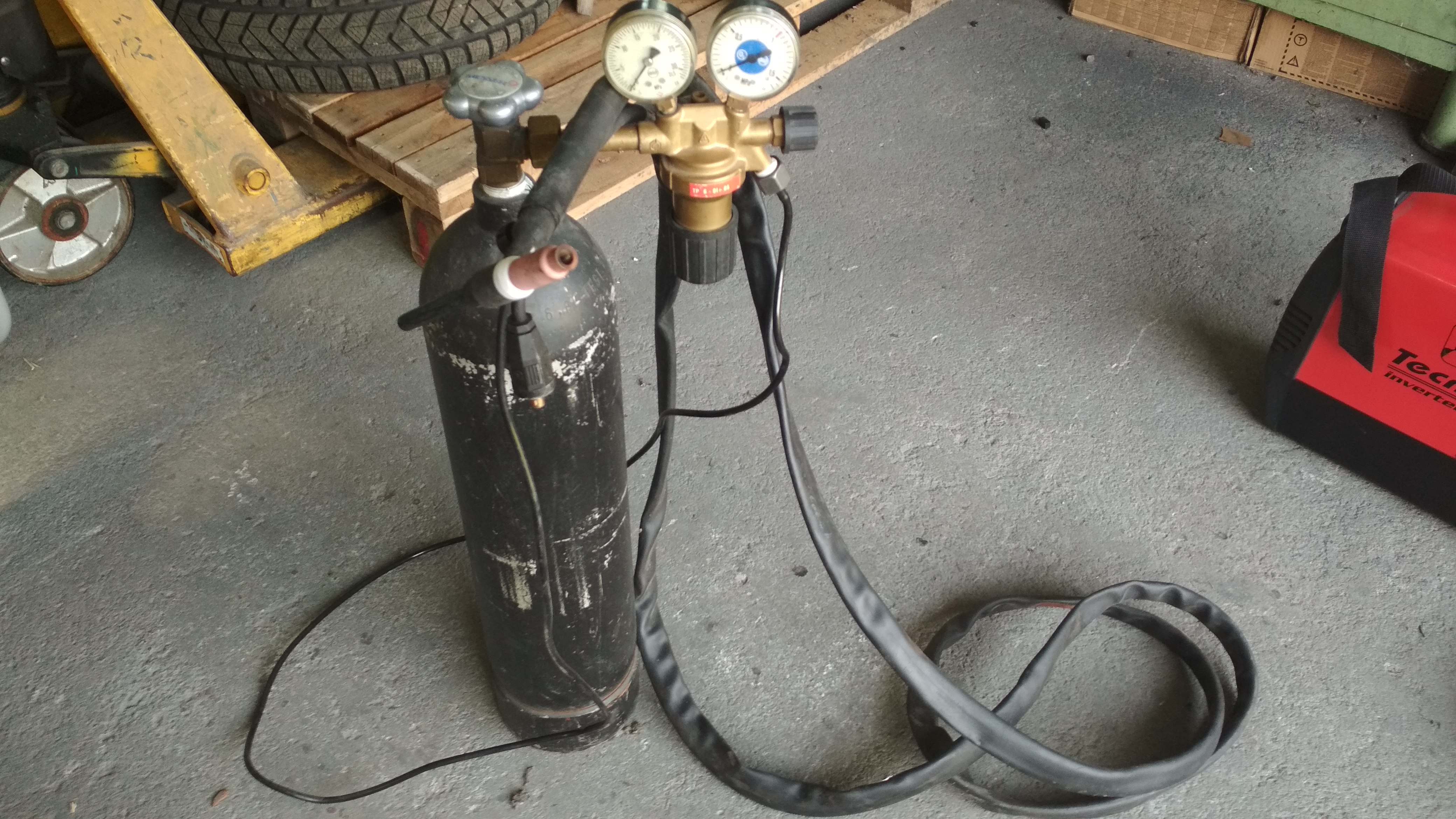 Hořák TIG vč. budíků a láhve a argonem (plná z 1/3)......................2000,-