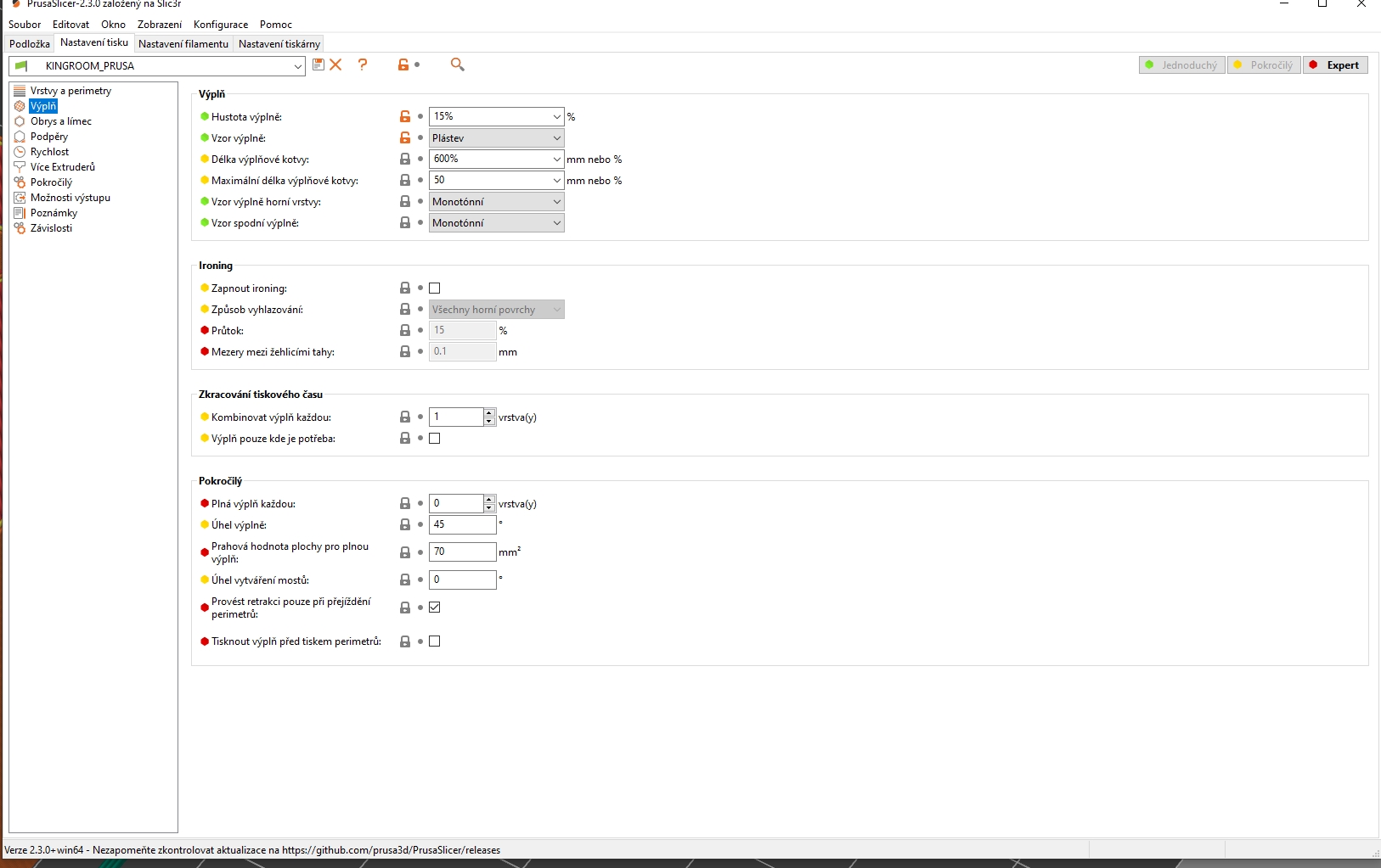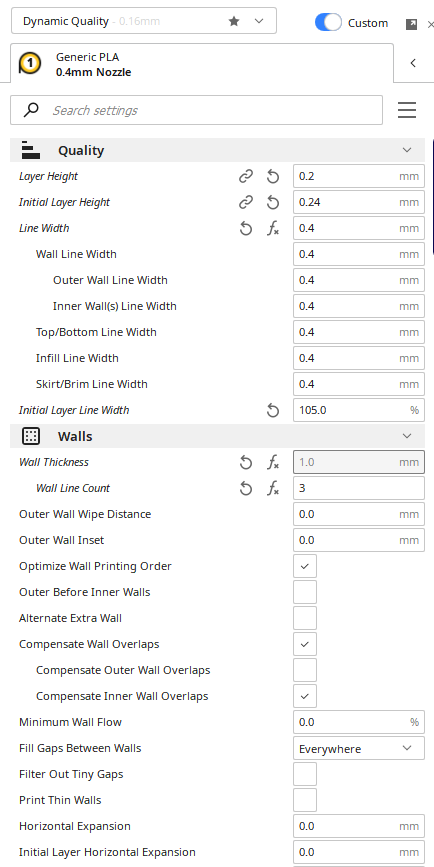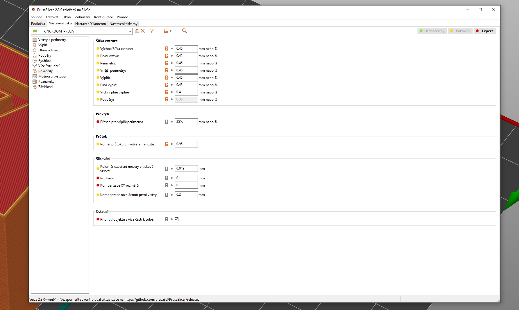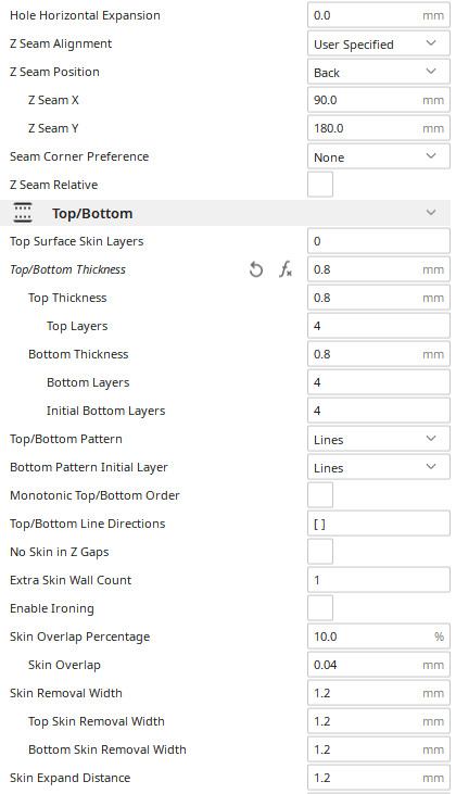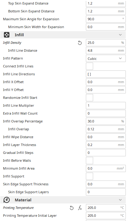 Jediný co mě pořád trápí, jsou ty nevyplněné mezery. Už jsem zvedal ten infill overlap na 30% a skin overlap na 20%, ale je to pořád stejný. Bude to asi ještě jiným nastavením, zkusím někdy projíždět položku po položce.