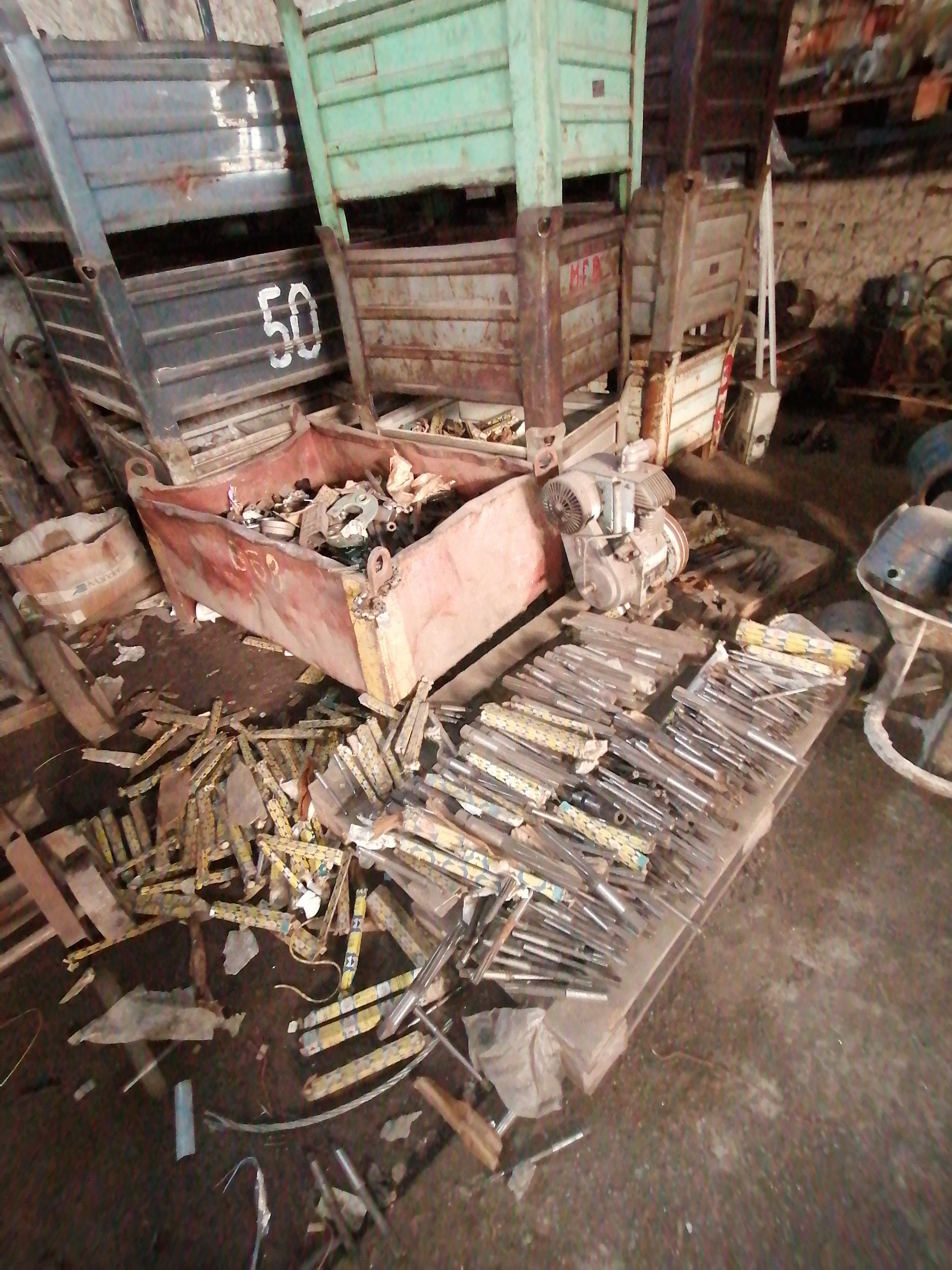 Jsou tam zouvačky a vyvažovačky na pneu, bodové svářečky, na zemi se válel sloupový stojan na automobil (nevím jak moc kompletní). Pak jsem tam našel revolverový soustruh a obrovskou polskou frézku. Na výšku má tak 3 metry. Zajímavý byl i masivní kovový stůl s rozvaděčem a místem na příslušenství, zřejmě od nějaké vrtačky nebo jiného stroje. Škoda že nemám místo, ten stůl bych jinak bral, je pěkně masivní.