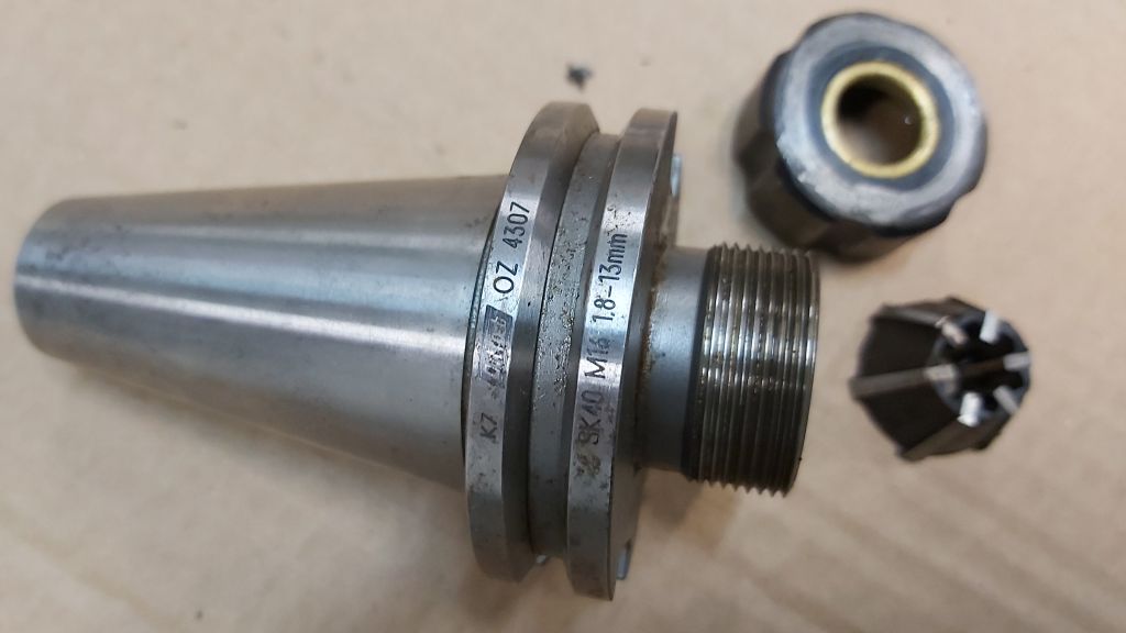 upínač SK40 M16 na uni klieštinu so gumou. teraz je tam klieština 4,5-10mm.