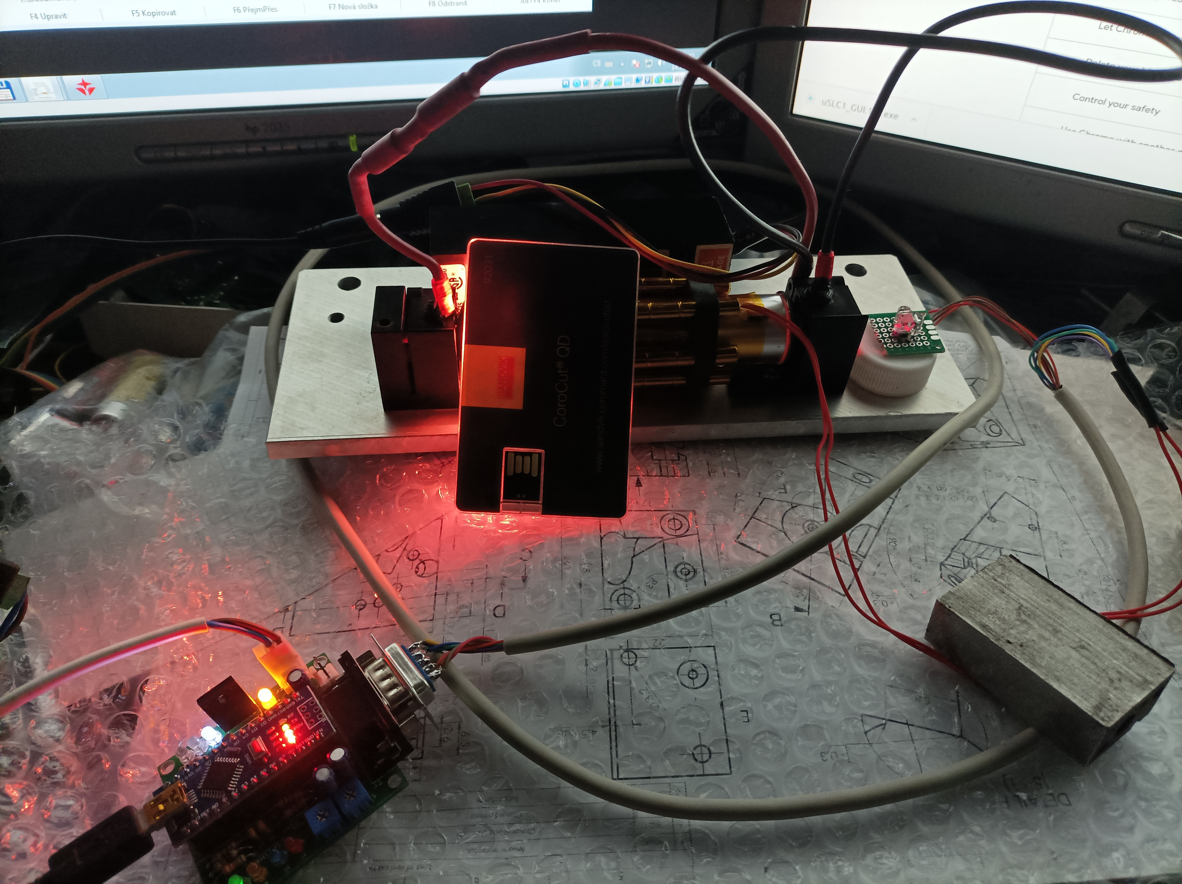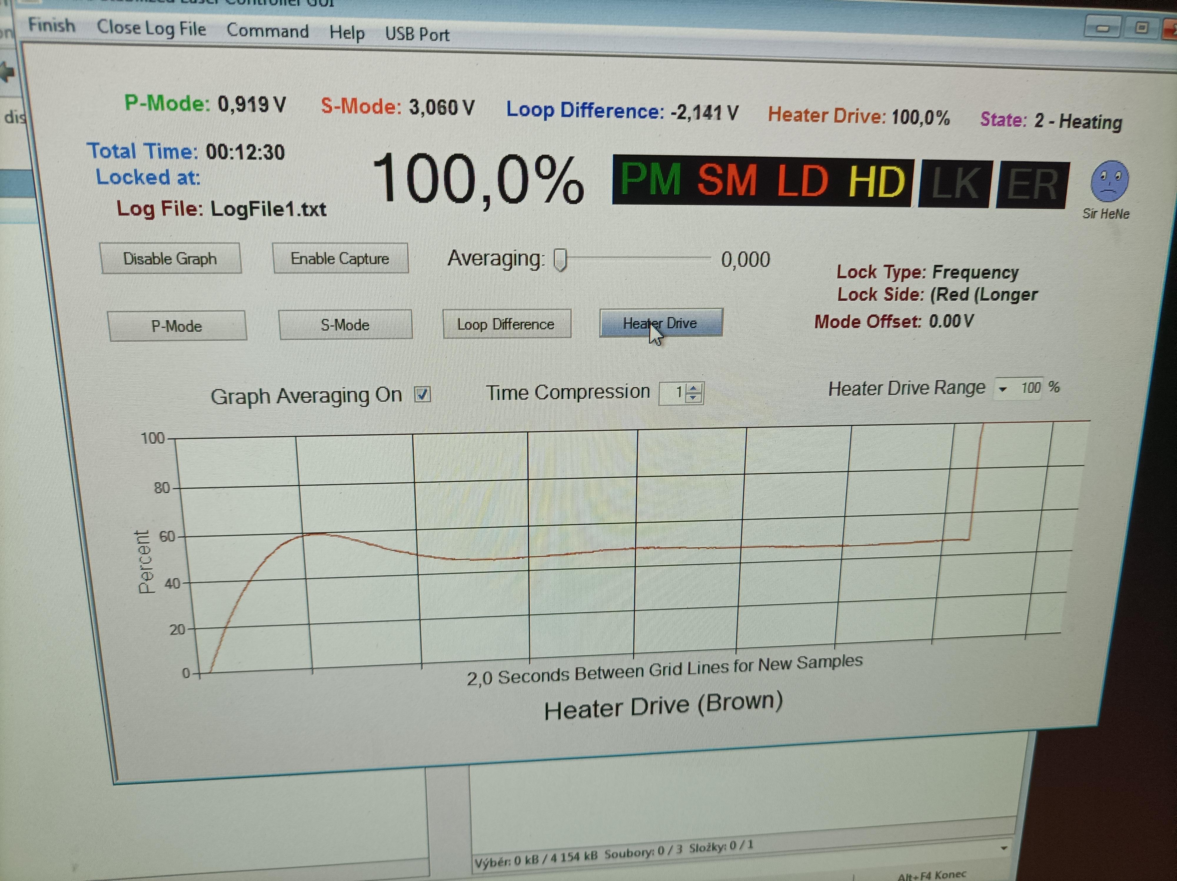 Jak u jsem nacal v bastleni. Rozjel jsem HeNe laser se stabilizaci. Ta se provadi analyzou jednotlivych slozek na polarizacnim beam splitter hranolu viz grafy. Akcni clen regulace je pak topny element ktery je v podobe folie namotany na teleso laseru a zahriva ho. Z kraje je treba zvysit teplotu znacne nad teplotu okoli abychom se pohybovali v pasmu ktere muzeme ovlivnovat. Pote se vyuzije obyc. Arduino na analyzu slozek zachycenou za hranolem beznymi fotodiodami. Ziskame tak znacne stabilni zdroj ktery lze pouzit jak na homodynni tak heterodynni spektrometrii. Pokracovani priste (pridani ref. signalu a pln Zeeman rezim).