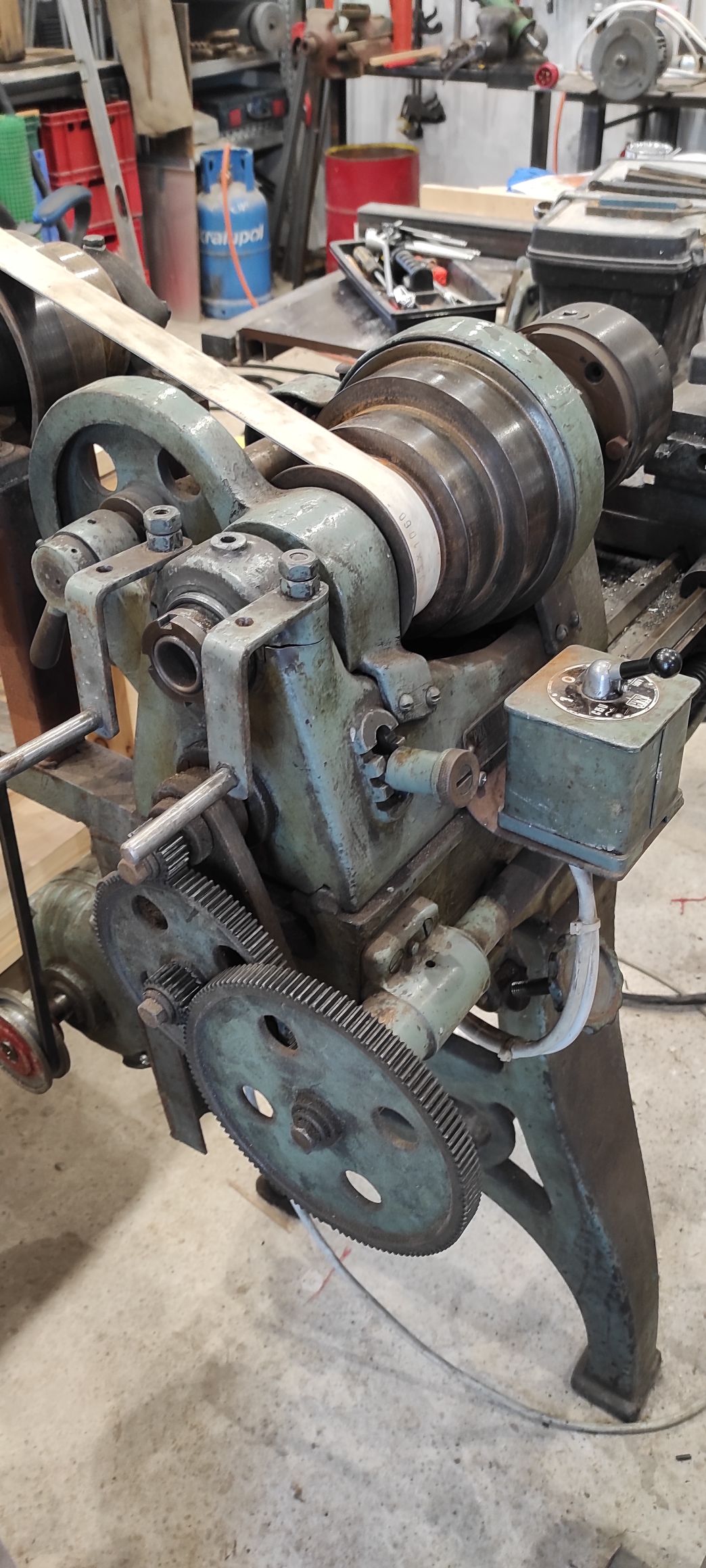 Zbýňa to napsal správně i odhadl cca rok výroby 1920. V té době a hlavně dříve ze začátku průmyslové revoluce. Neexistovala elektrifikace. Takže jediné řešení bylo společný pohon pro celou fabriku a rozvod přez transmisní hřídele.