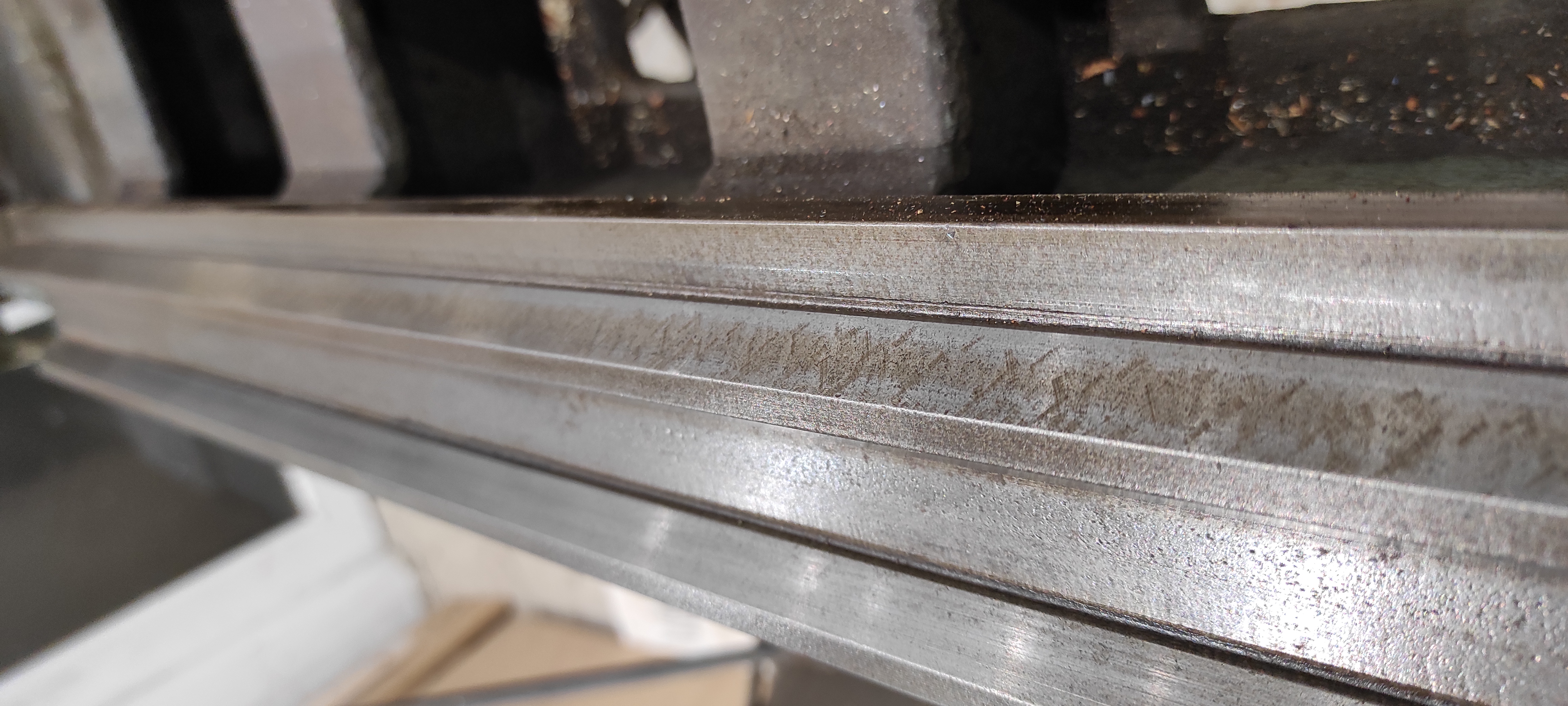 Našiel som totálne vydraty a zohnútu osku na priečnom posuve, myslím že niekomu musel prebehnúť dokonca a nevypol asi: