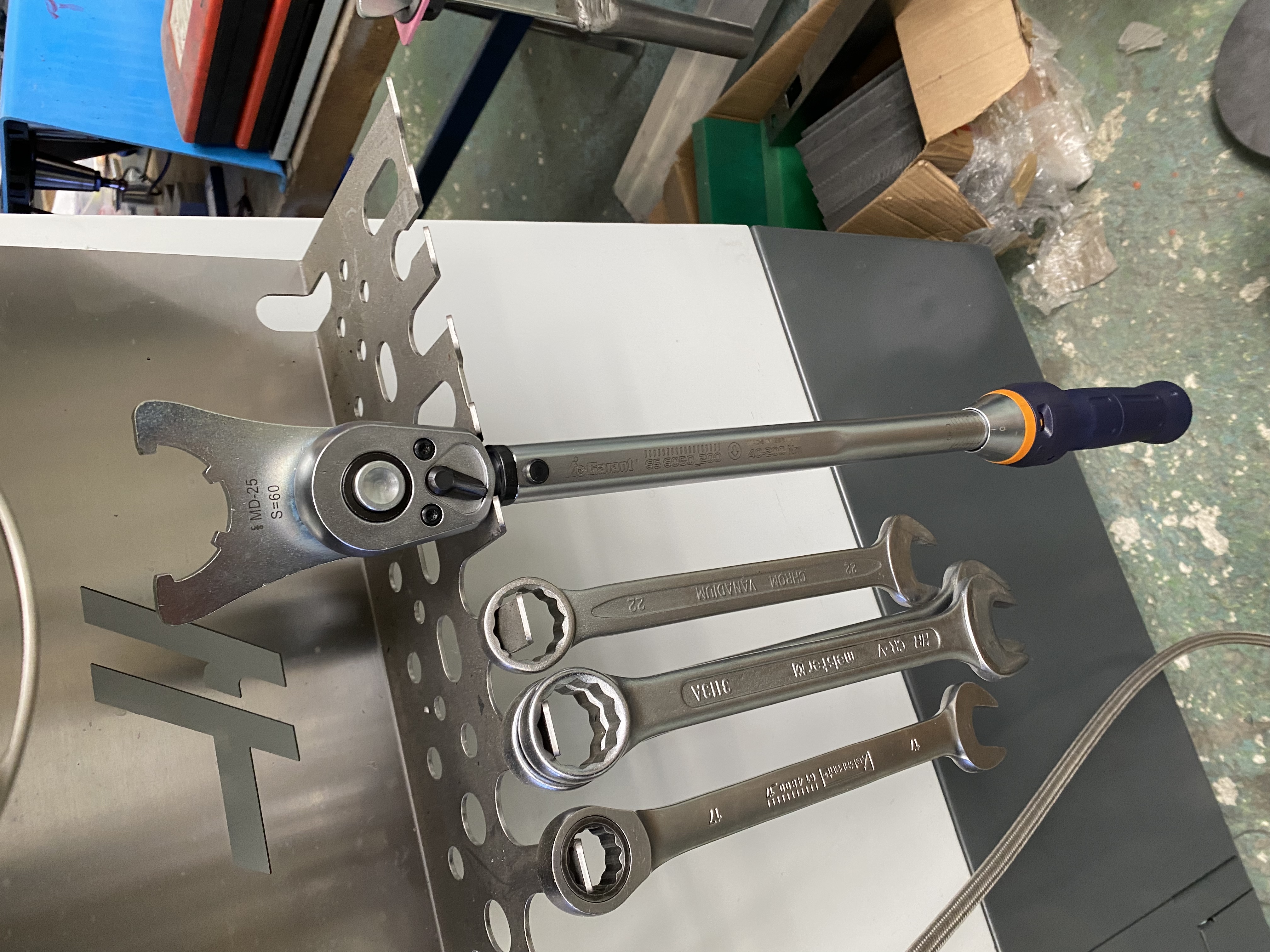 Takhle to vypadá, matka nemusí být nutně původní, ale opotřebením se tak jeví. Dotaz, kdo utahuje matici na kleštiny mometovým klíčem?