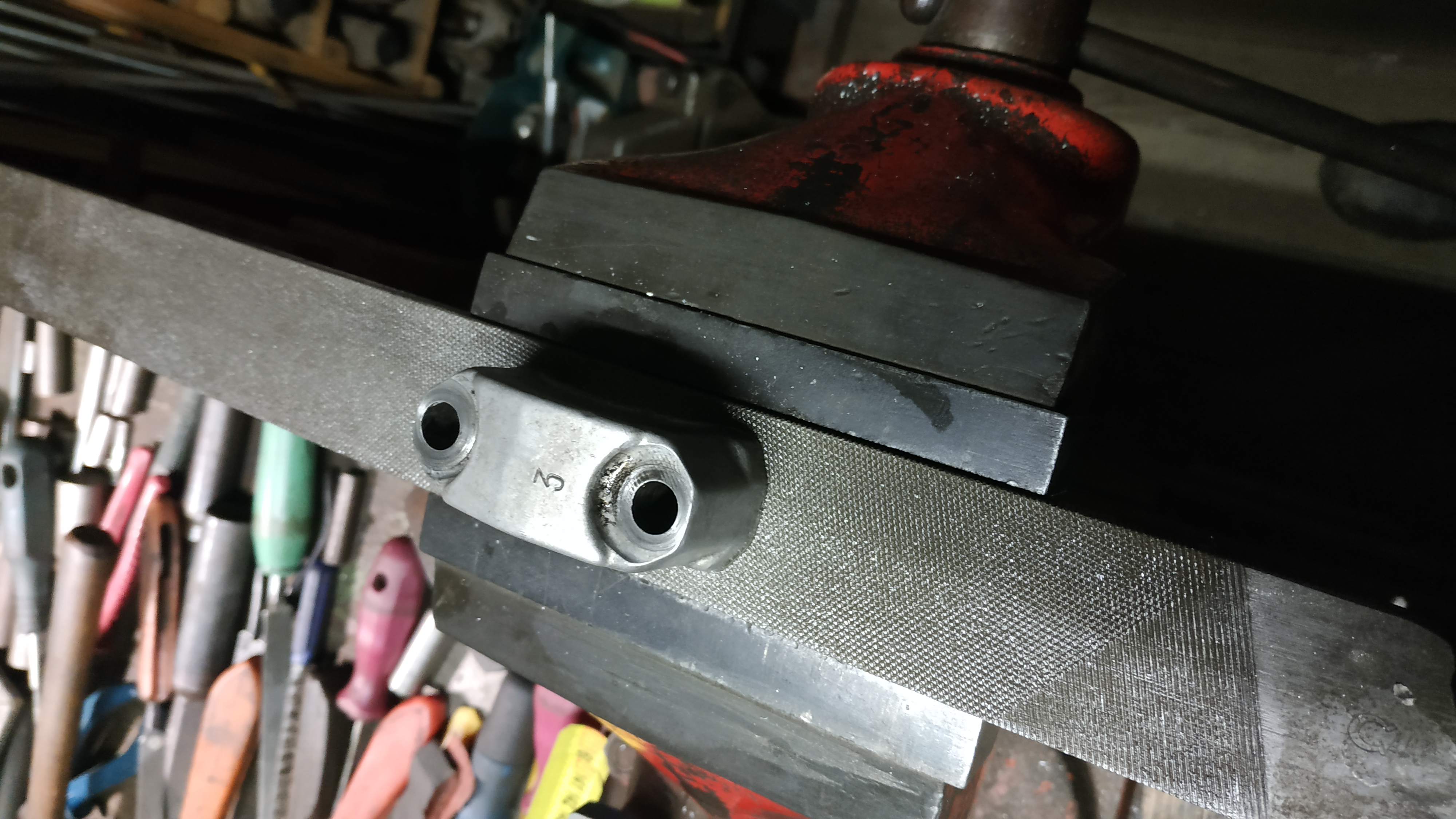 Dnes jsem tvořil a narazil jsem na technologický problém. Poprosím o radu, jak na kruhové otvory cca 80 mm v domácích podmínkách, zda-li by to nějak šlo. Disponuji stolní vrtačkou (podoba V10) mn80, frézka jakás taktéž, i s otočným stolem, ale tak malým, že tam to co dělám neprotočím skrze vlastní sloup frézky. Na fotce je první kousek z hliníku, finální mám ale z 1mm železa. Ten hliník jsem zkoušel "proděravět" stavitelným vykružovákem co jsem si narychlo udělal (ale jen jednoramený a drnčelo to tak, že hliník by možná šel, ale železo by určitě nedal - možná udělat pořádnější šlo by to??). nakonec jsem to stříhnul nůžkama, on ten kraj stejne není vidět, ale rád bych měl lepší pocit z díla :c).