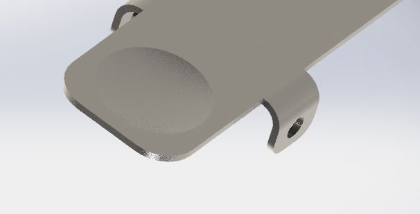 Ta divne tvarovana prohluben slouzi jako zamek zapadajici do uzamykaciho otvoru v drzaku. Smerem s mensim sklonem se pristroj nasouva do drzaku (cestou musi prekonat vyvysenou hranu - proto ten mensi sklon) a pruhluben ho nasledne zamkne v otvoru (pruzina tlaci prohluben do otvoru pres paku s osou v cepu). Opacnym smerem uz beze stlaceni pruziny nejde snadno vysunout kvuli strmemu sklonu pruhlubne a "zamknuti v dire".
