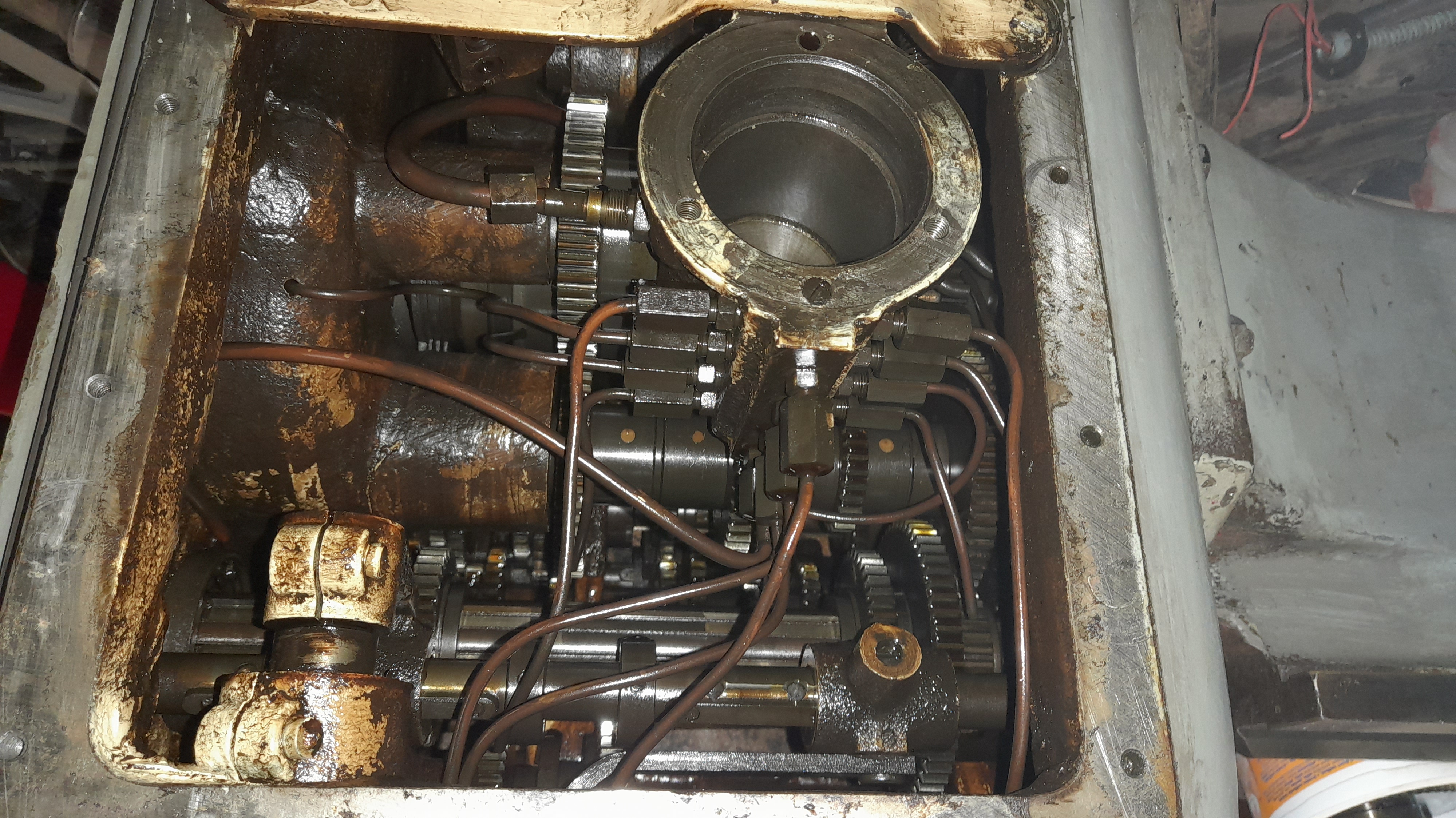 Ano, co jsem vypozoroval tak je to vlastnost tohoto stroje. Olej ze suportové skříně při zapojení strojního posuvu kape na tu hřídel a jejím otáčením se roztéká po celé její délce takže je celá mastná a pak to z ní kape do vany na špony a do toho žlábku na zadní noze. Vše co tam odložím je mastné. Děje se to od té doby co jsem zprovoznil olejové čerpadlo suportu (pružinka byla v háji).