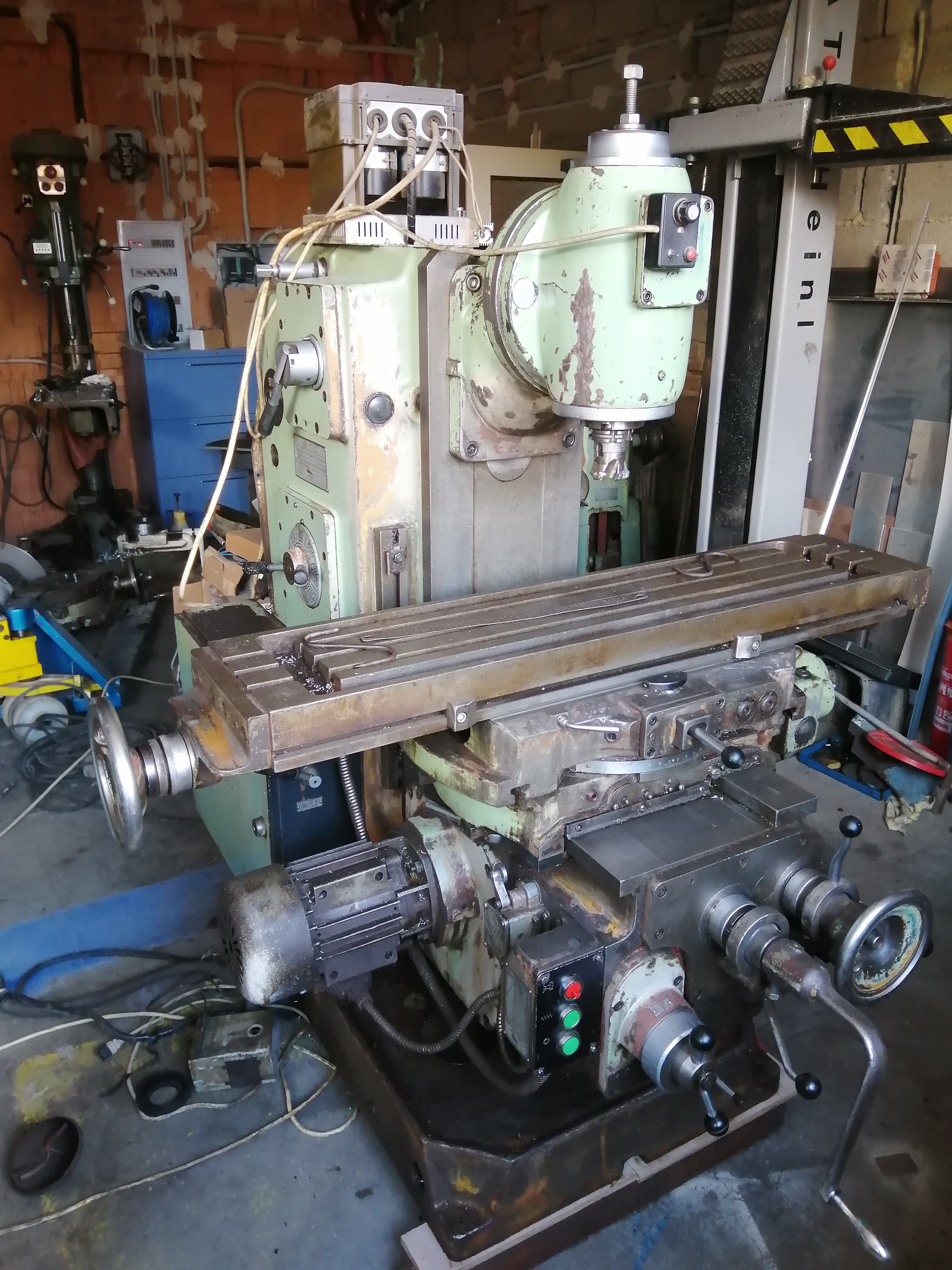 Mám ji od firmy, co servisují obráběcí stroje tady ve Zlíně.Mám ji přes 10 let. Není to žádná kráska, ale sloužila a ještě slouží dobře. Mám na ní frekvenční měnič 5,5kW, tak frézuji jen na nejvyšší zařazený stupeň. Řazení otáček jde bez problémů.