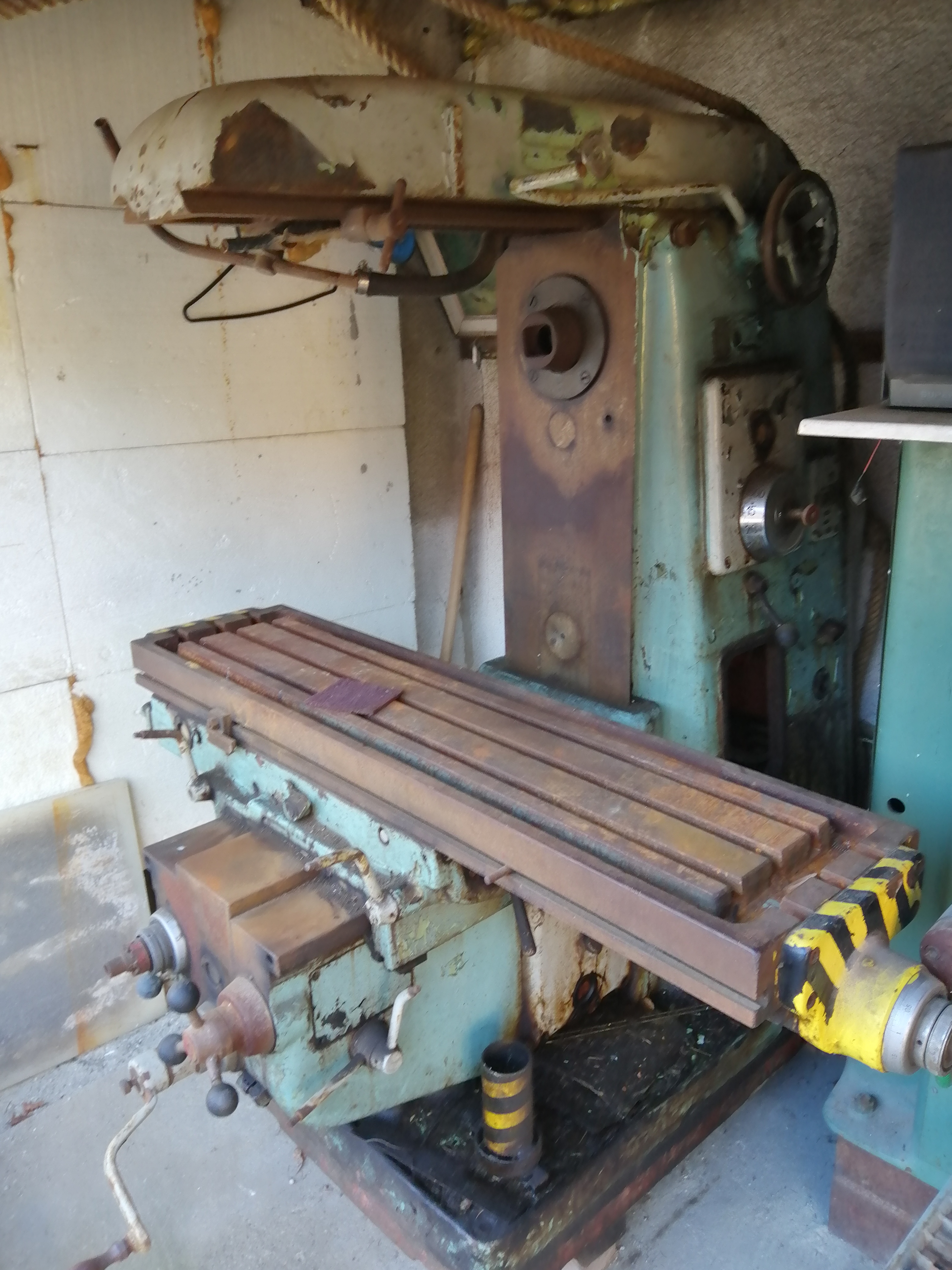 Tu jsem vzal, že na ni předělám hlavu z 6p81, protože má větší stůl a spřažené pohony. K tomu však také nedošlo. Víc o ní nevím, neměla motor. pohon vřetena se točí lehce, řazení posuvů jde také lehce. Opěrné ložiska nemá. Má povrchovou rez, i přes to že byla namazaná. Stojí sice venku, ale je celou dobu pod střechou. Čekala až se dostane do dílny, ale místo ní šlo postarší centrum MCV32, tak už na ni není místo.