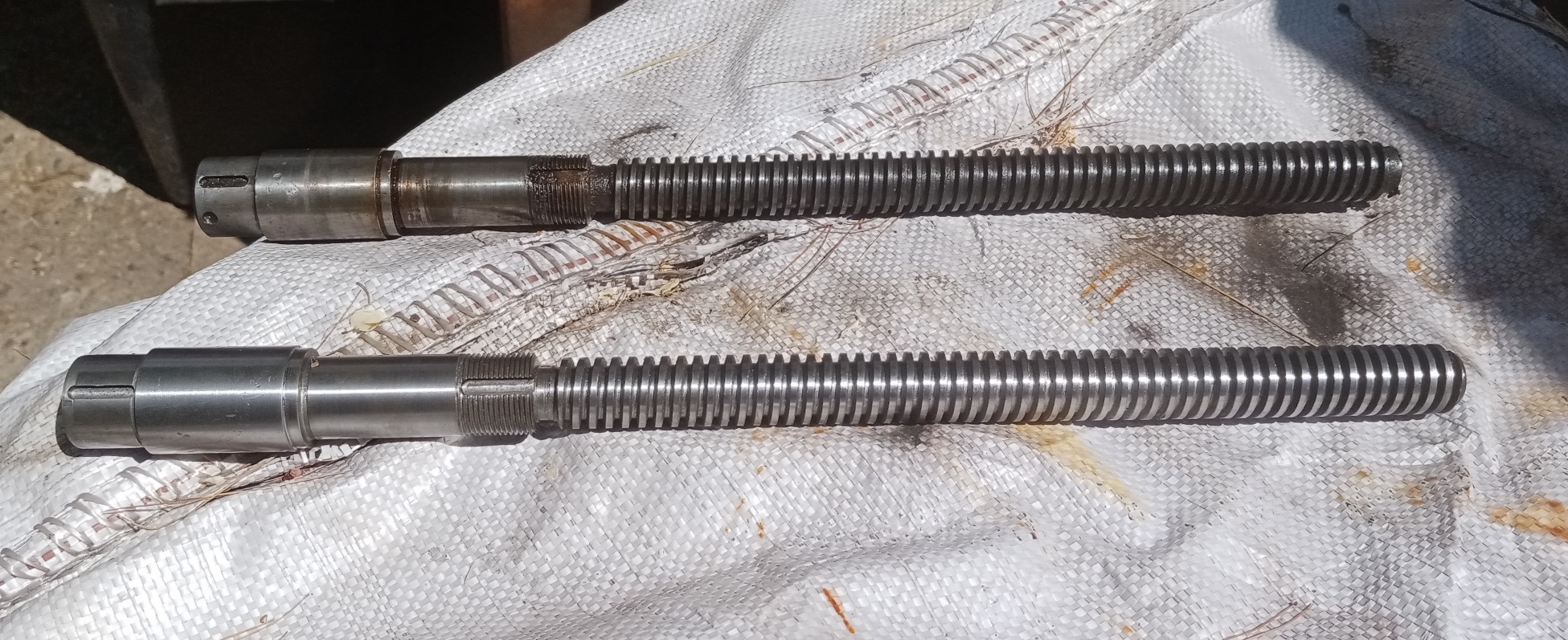 Matka šroubu překvapivě jako šroub v dobrém stavu s minimální normální vůlí. Akorát jsem to musel třikrát rozhodit, matka se musela podložit o 1,75mm, sice se mi to mikrometrickým hloubkoměrem podařilo změřit na 1,82 ale chtělo to ještě o necelou desetinku dolu, teď chodí jak po másle